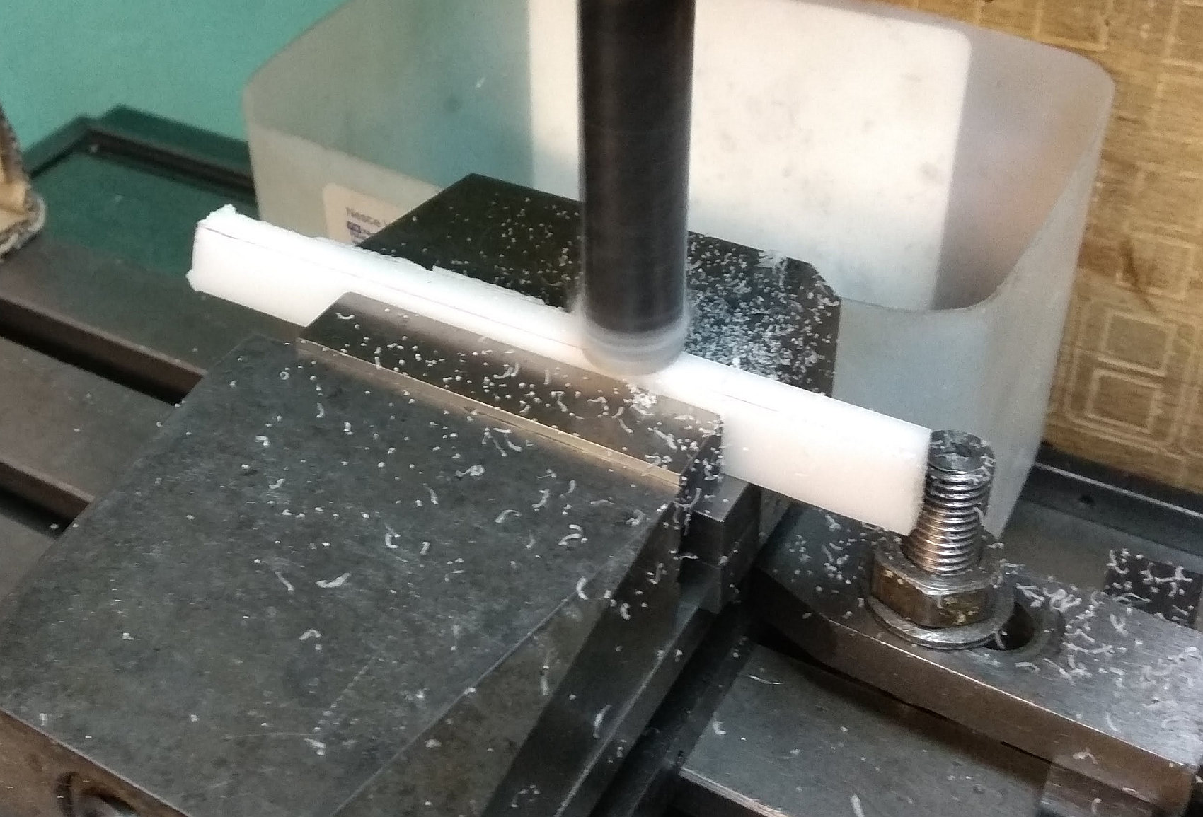 Из обрезка пластика фрезернул планку.. порезал ее и распустил на две части. выбрал пазы... снес фаски... ну и поставил на место.. вот такая вышла крышечга.... Ну и она на месте - фото снаружи.. и изнутри.. Идея была такова, что после работы под станок подставляем лоток (сделан) снимаем крышку и выгребаем весь шлак в лоток. убрали.. крышку закрыли и снова герметичный объем.. ну не в смысле что вознух не проходит, а что стружка вся внутри остается