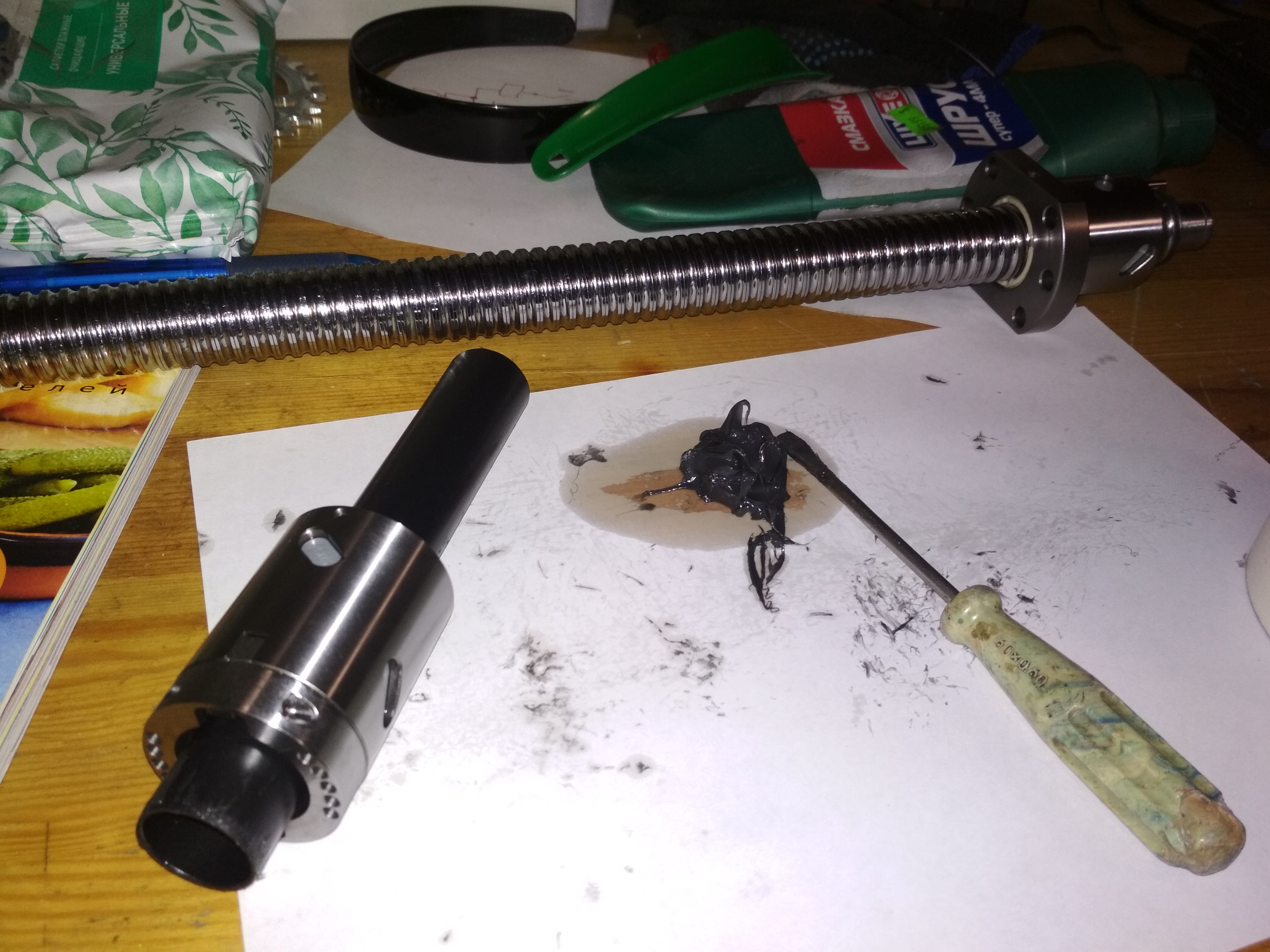 Начал менять направление гайки в швп и забыл ослабить преднатяг когда выкручивал в итоге высыпались шары, пришлось потратить пару дней на сборку гайки и установку ее обратно, так же собрал и поставил наконец то датчик высоты.