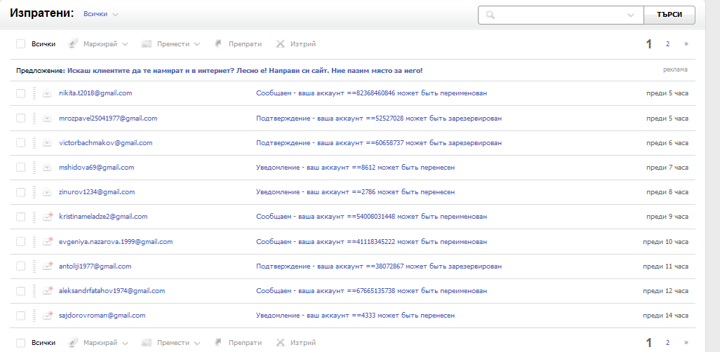Почта mail.bg , особое то что получатели все в Россия и по рускому .