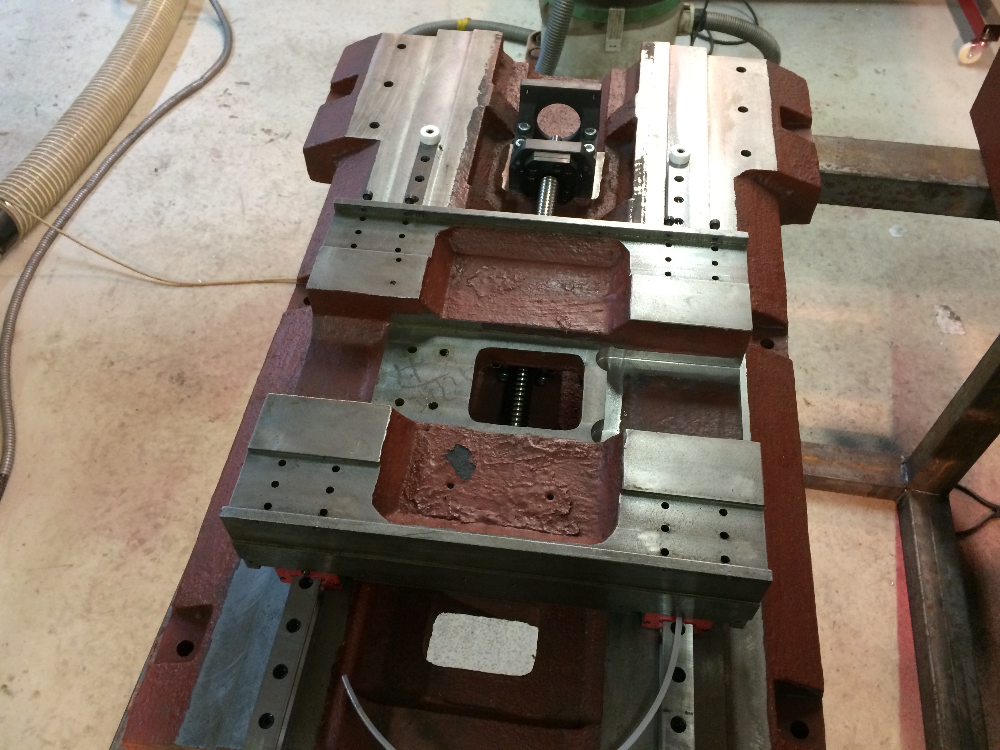 Со шпинделем пока толком не определились, на первое время 2,2кВт 4-х полюсный поставим ,а дальше видно будет.Кронштейн шпинделя съемный -напрочь замодернизировать его или заменить под свои хотелки сложностей не составит С штифтовкой опор ничего экстраординарного, отверстия опор сделал сквозными , далее выставил их на положенное им место и прям сквозь опоры(заместо кондуктора) засверлился в станину . Пяток минут поработать конической разверткой и посадочное место под штифт готово ...... в чугуне сие действо выполнить было не трудно и сверла конусные искать не пришлось.......
