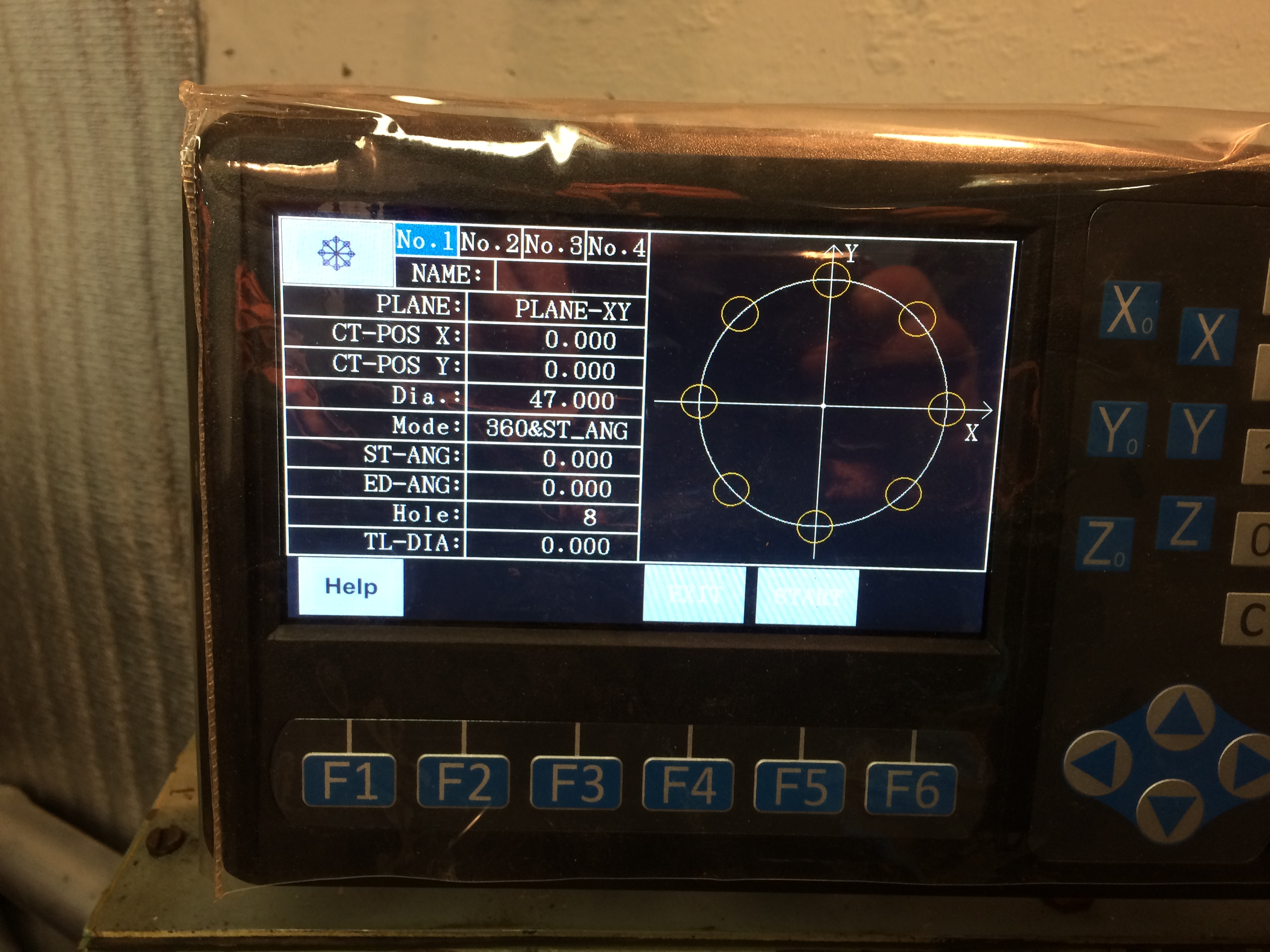 Показываю на примере вот такого корпуса гайки швп По сути - надоть насверлить крепежных отверстий под гайку на определенном диаметре. С графическим уци проще простого - указываем координаты центра окружности на которой расположены отверстия и её диаметр ,ну и количество отверстий .... далее выбираем нужное отверстие и тупо оси Х и У выгоняем в 0-ль, выбираем следующее и опять Х-У в ноль........ думать и чёт там считать нефига не надоть и поворотный стол кстати тоже не у дел остался....... еще пару фото с тем-же самым, цвет дисплея поменял чтоб фото понаглядней было-