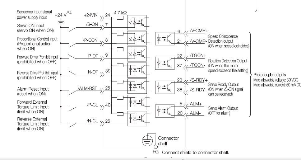 Вам нужно подключить +24 вольта от блока питания на серву, а в разрыв минусового провода от этого блока питания подключаете выходы ENA- и ENA+. Когда 7i77 решает подать сигнал s-on она соеденяет ENA- и ENA+, в результате на контакте привода s-on появляется минус от блока питания и s-on активируется.