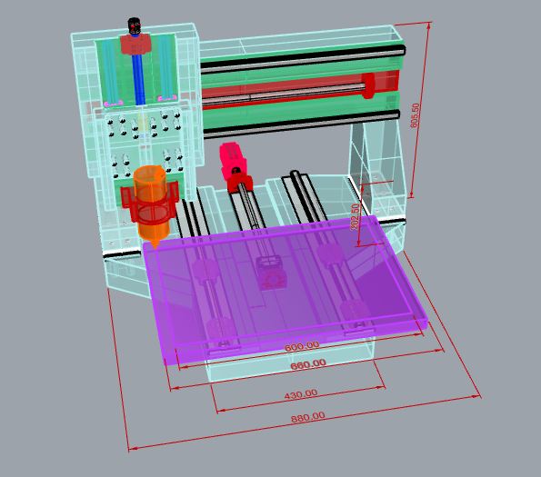 По предварительным чертежам: осталось придумать куда налепить движки. Может быть даже просто удлинить закладные за пределы заливки (не фрезеровать при обработке в нависающую часть). Либо установить solidworks, успатовить плагин для расчёта шестерён и шкивов и заложить места под двигатели со шкивами и зубчатыми ремнями. Ну и набросать защиту. Мне понравился вариант у ridirt с защитой из какой-то ткани или что это)
