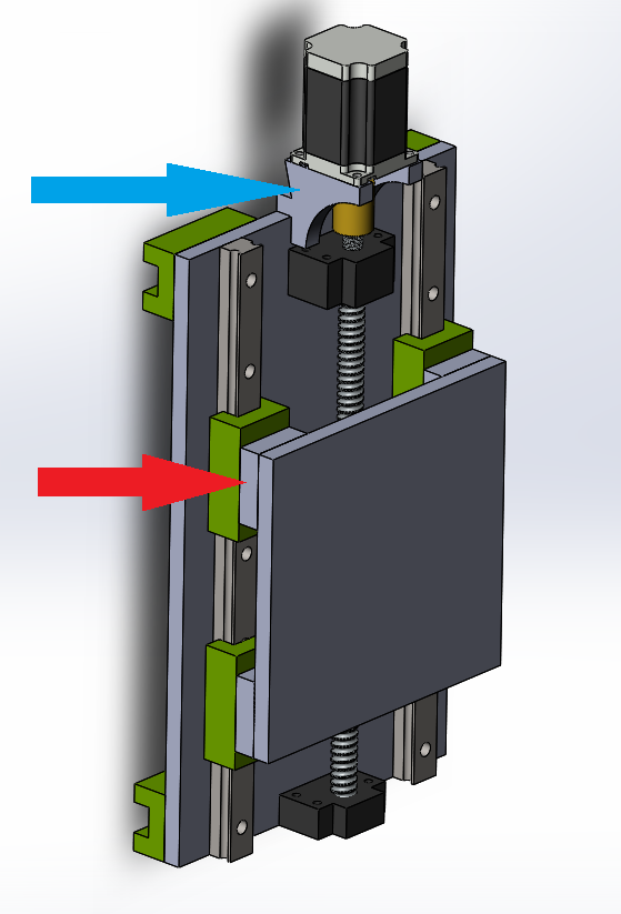 Здесь изображена будущая ось Z Вот эти вот ПРОСТАВКИ это адекватное решение? Дело в том, что рельсы Hiwin с кареткой имеют высоту 30мм, а площадка "гайки" швп 45мм. К сожалению, утопить ШВП не представляется возможным - пострадает горизонтальная ось, находящаяся сзади. Вот её ШВП я уже собираюсь топить.