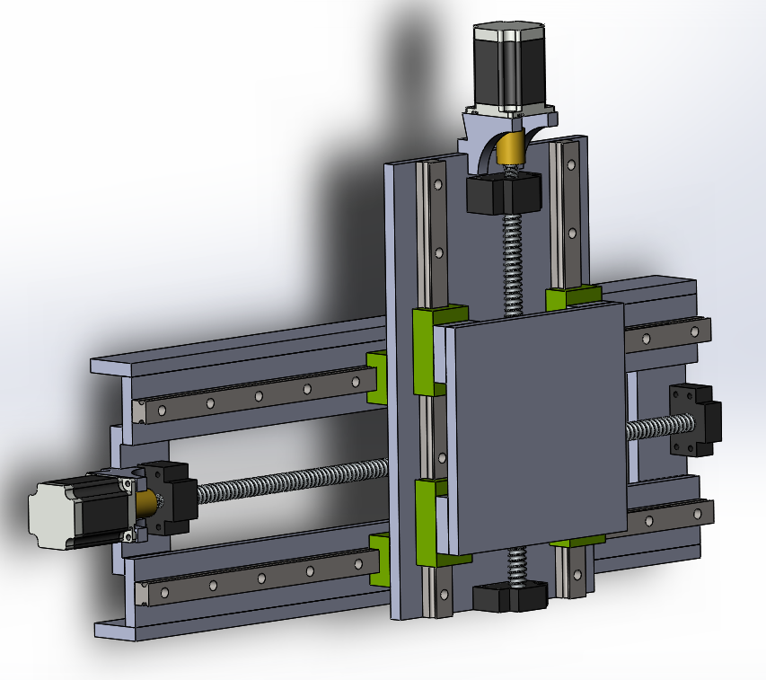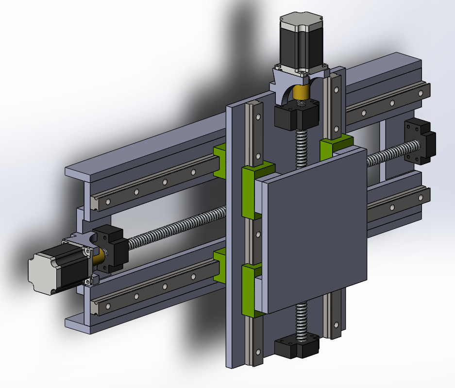 Здесь изображена будущая ось Z Вот эти вот ПРОСТАВКИ это адекватное решение? Дело в том, что рельсы Hiwin с кареткой имеют высоту 30мм, а площадка "гайки" швп 45мм. К сожалению, утопить ШВП не представляется возможным - пострадает горизонтальная ось, находящаяся сзади. Вот её ШВП я уже собираюсь топить.