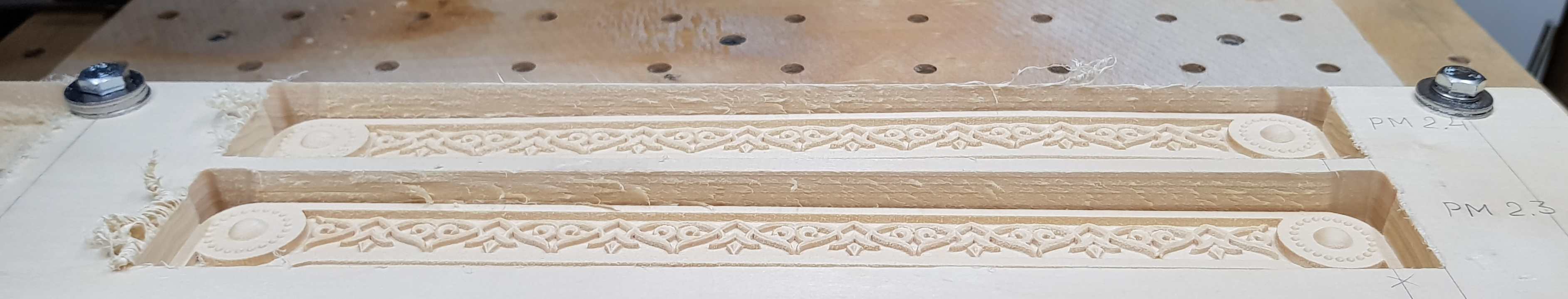 Не хотел раньше времени сообщать. Но, похоже, подчеркну - похоже, что проблема решена. Окончательная проверка состоится завтра, результат будет, надеюсь, положительный. Помощь оперативно оказана техподдержкой Purelogic, за что им огромное спасибо. Уже утром по Мск на почте у меня было объёмное письмо. Прислали несколько вариантов решения с подробным описанием, так сказать, "методику тестирования". Первым способом рекомендовали инвертировать сигнал STEP на двигателе оси Z. Что я и проделал. ПО вернул на версию 2.4. Запустил прогон "тестовой" полоски. Результат порадовал - никакой "волны" не наблюдается, всё, что должно быть ровным, ровное и есть. На фото - нижний рельеф.