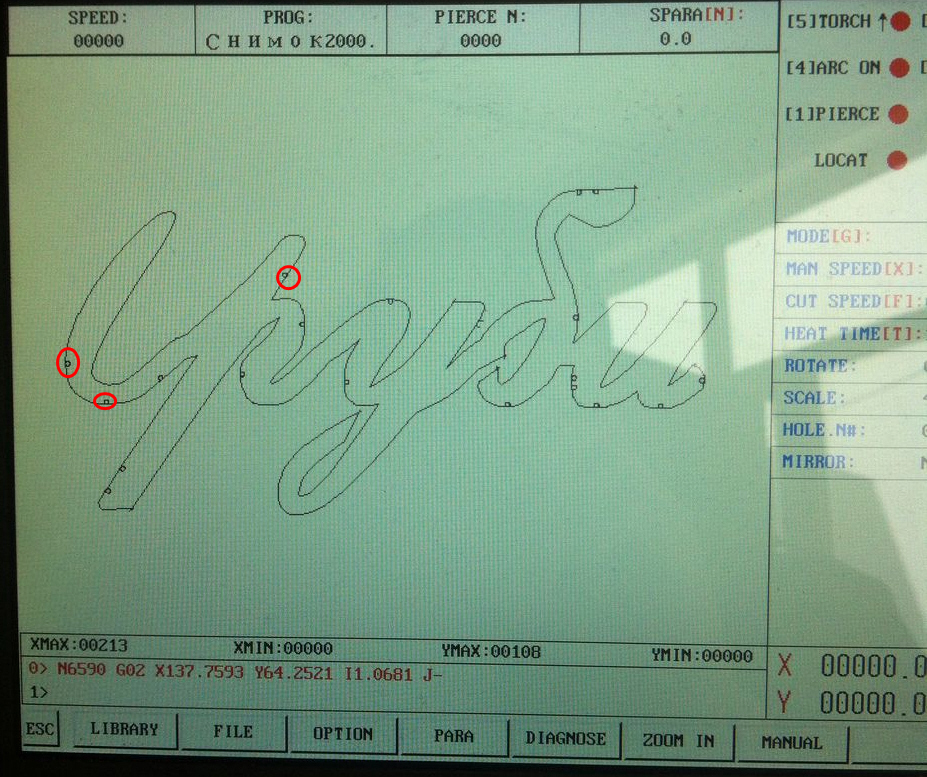 В контроллере SF2300 открываю tap файл и на экране вижу, что вдоль контура расположены непонятные дуги.