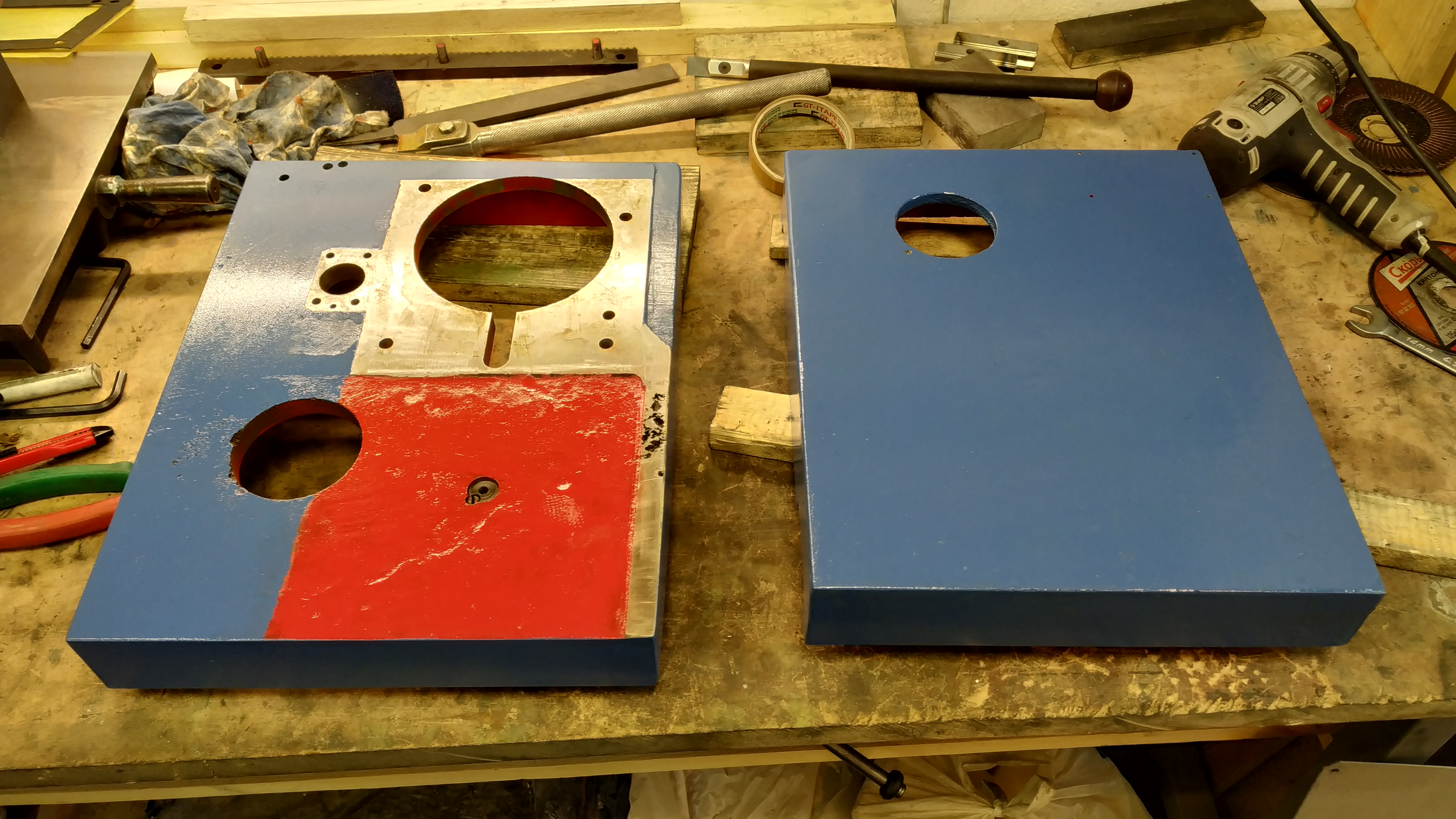 В очереди на покраску станина с тумбой.