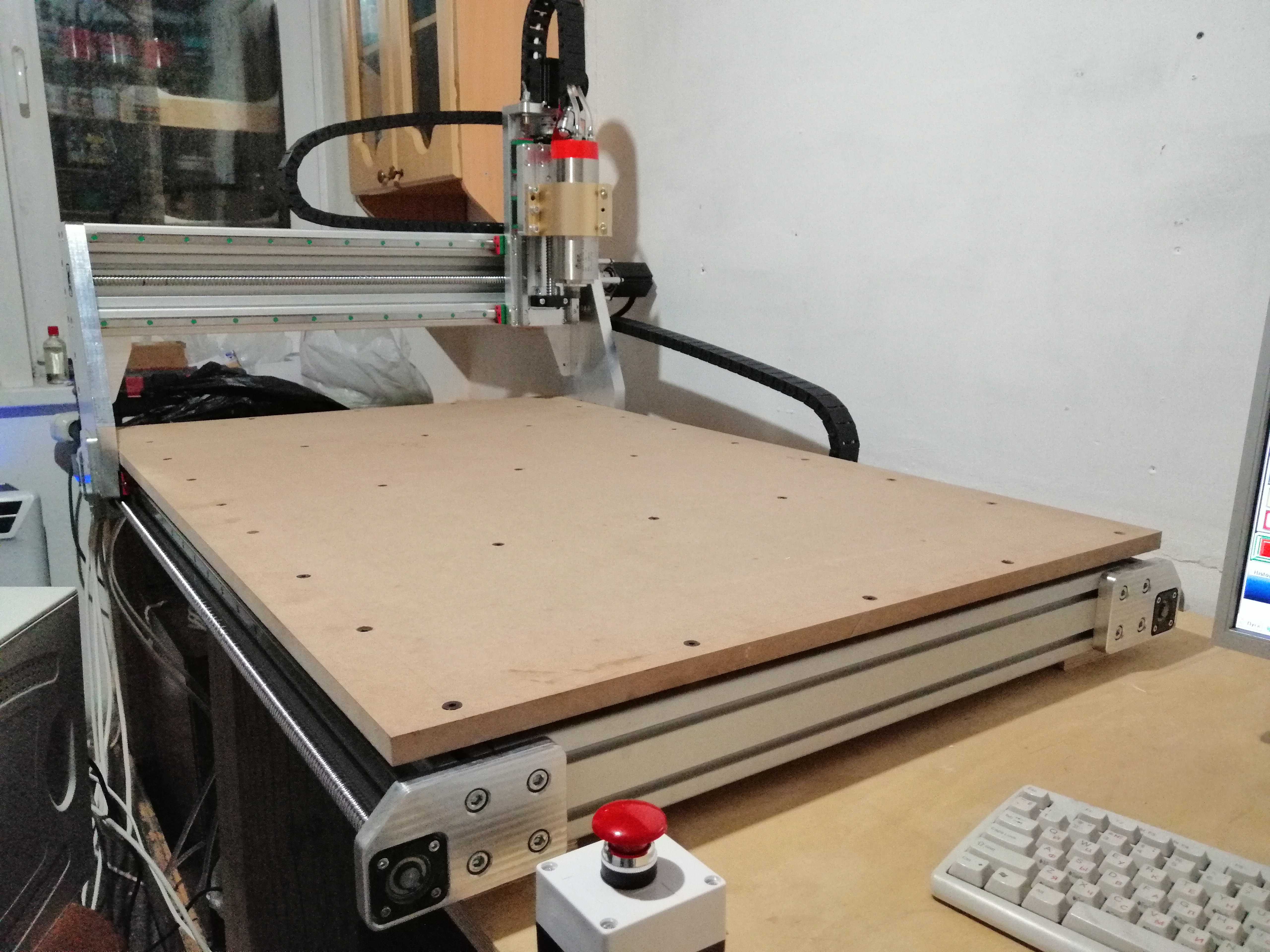 Переехал станочек на пмж и был успешно протестирован. Результатом доволен- бегает резво, удалось добиться стабильной работы на 12 м/мин, на 15 начинаются срывы. Ток на драйверах перед первым запуском RMS 1,9; peak 2.7, окончательно для 12 метров в минуту выставил RMS 2,3; peak 3,2, больше ставить опасаюсь, хотя может и стоило попробовать, и на 15 метрах стабильного режима добиться.