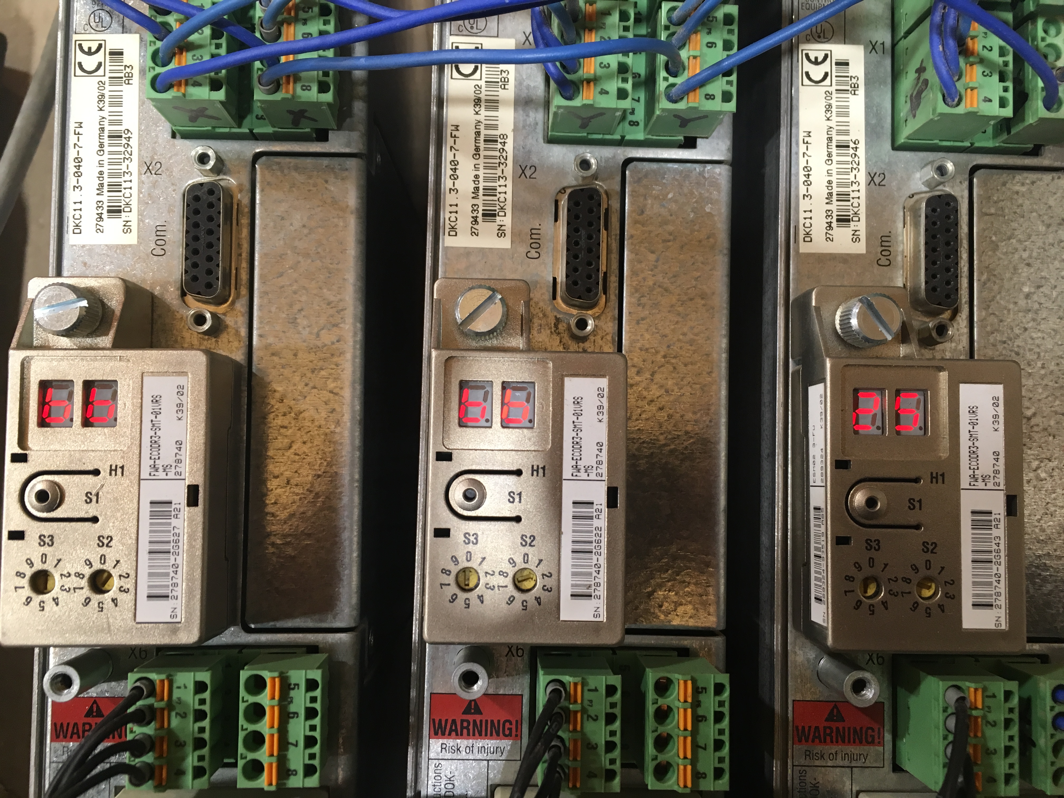 L+ и L- параллельно соединены на всех? Я так понимаю это и есть постоянка? Вот там мерять... Но если цепь общая, а ругается только один привод, то большая вероятность, что что-то с ним.