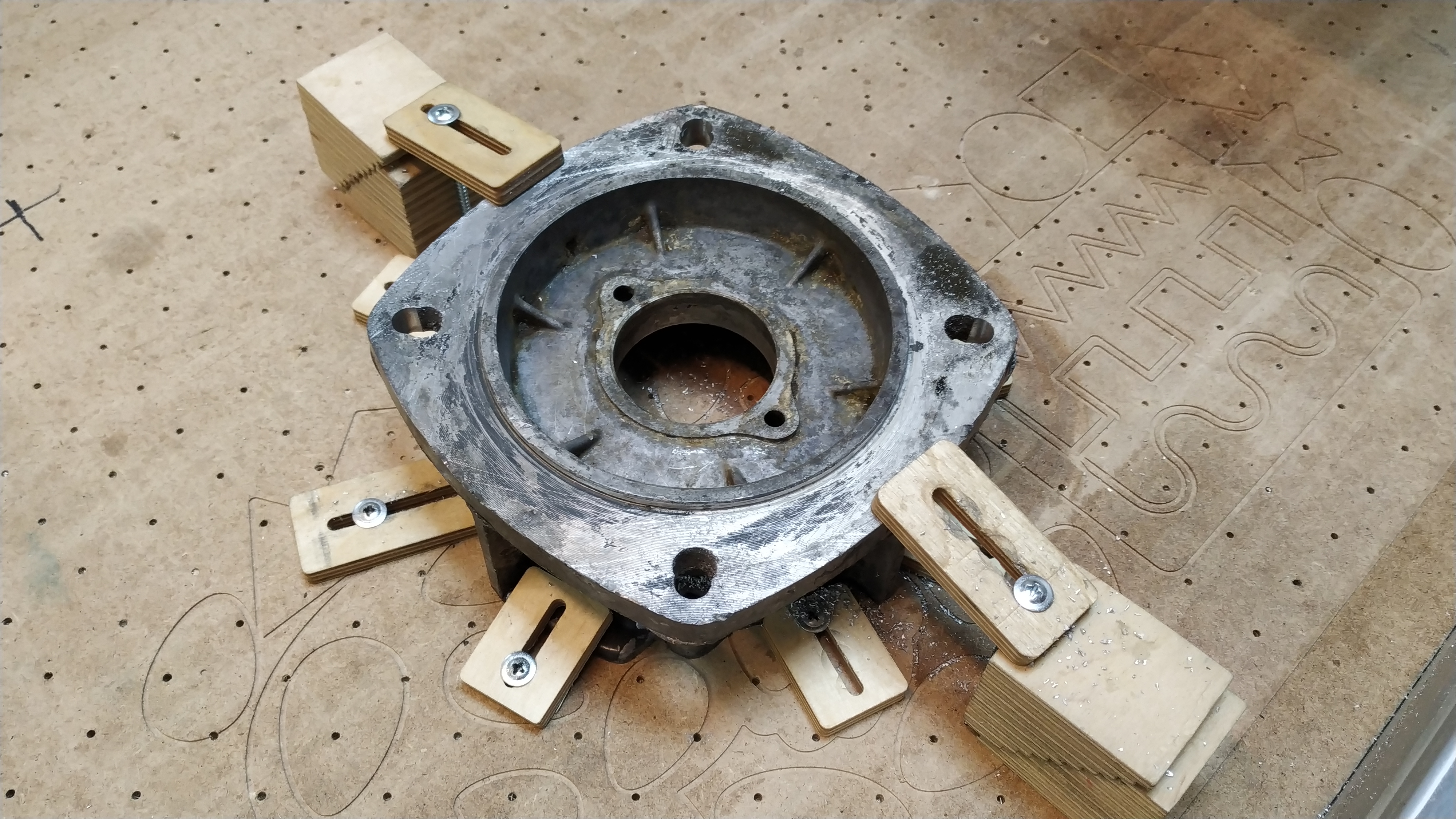 Решил использовать родной фланец. Выпилил проставочное колечко из Д16Т.