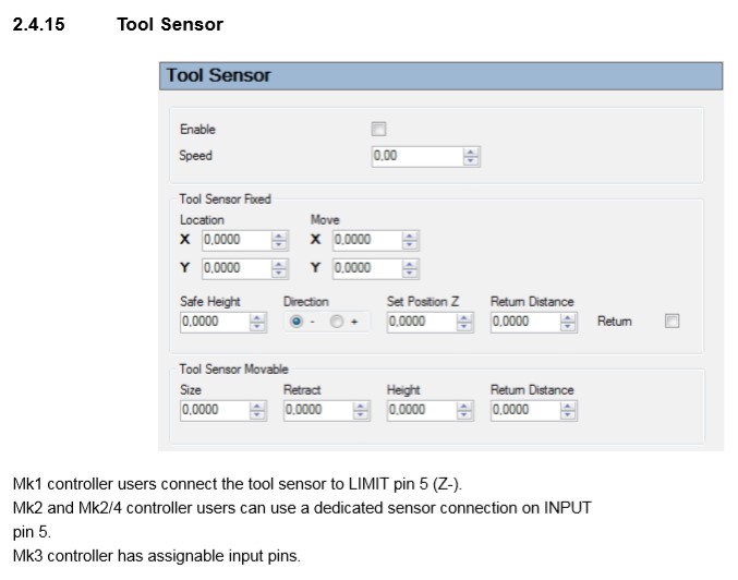 Далее, я тут подумал, USB CNC Controller Mk3 позволяет настроить софтлимиты, которые при при хоминге и подъезде станка к концевику снижают скорость, без всяких ухищрений. По идее на наезде на -Z при измерении должен притормаживать при условии, что длина инструментов не слишком разнится.
