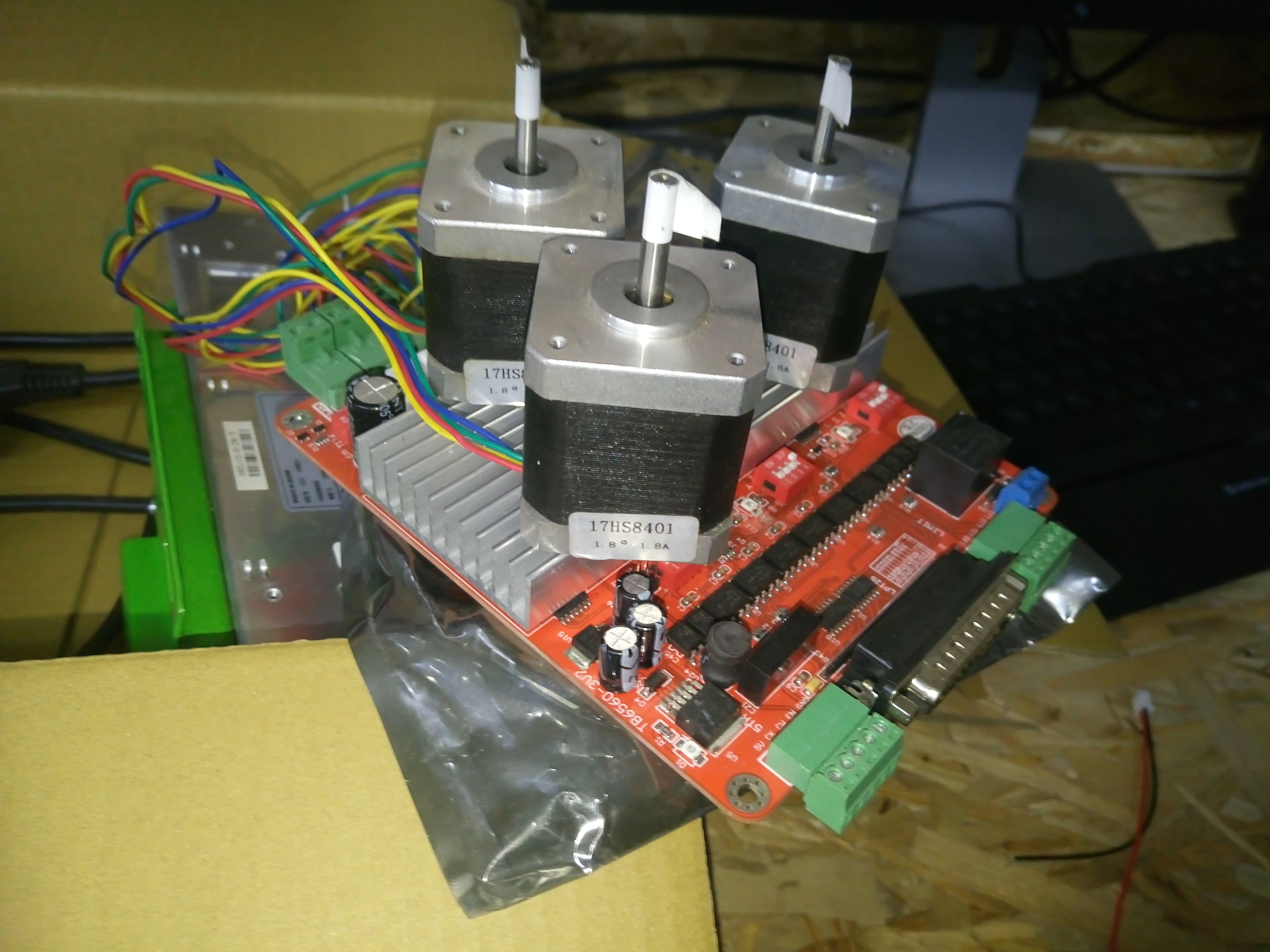 Продам связку: Драйвер TB6560, 3 мотора 17HS8401, блок питания 24В на 6,5А, провод коммутации к LPT. Всё абсолютно новое, кроме БП. Покупалось под минилазер, да так и не дошли руки. Электрика подключалась один раз к мач3 для проверки оборудования. Повращал движками с клавиатуры и сложил в коробку. Т.е. оборудование без пробега. Плата драйвера всегда находилась в антистатичном пакете.