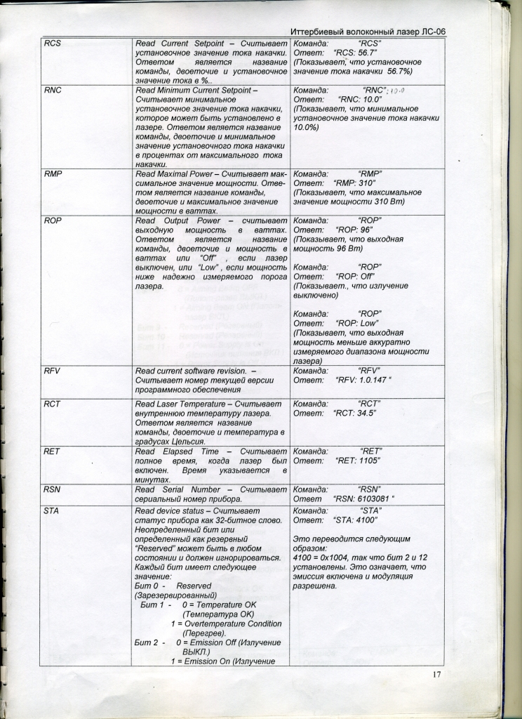 drifter писал(а):лазер управляется через порт RS-232 команда SDC 50 говорит о том что ток диодов 50% от максимальной. тоесть на выходе лазера буит 300 ватт. затем команда emon включает лазерное излучение. emoff выключает. на каком выходе лпт порта искать эти команды? если я их пропишу. и можно сразу проводок кидать к RS-232 лазера или нужен какойнить контроллер который свяжет LPT и RS-232?