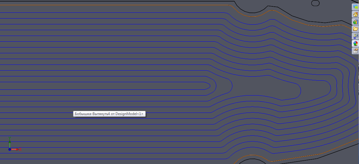 обработка кармана,технология контурная , на скрине траектории явно видно пробелы в которых останется не снятый материал. Хотел спросить чегой-та САМ так косячит-то ? иль я чего в стратегии недоглядел.....? Шаг обработки уменьшить не выход, т к борьба идет за скорость обработки