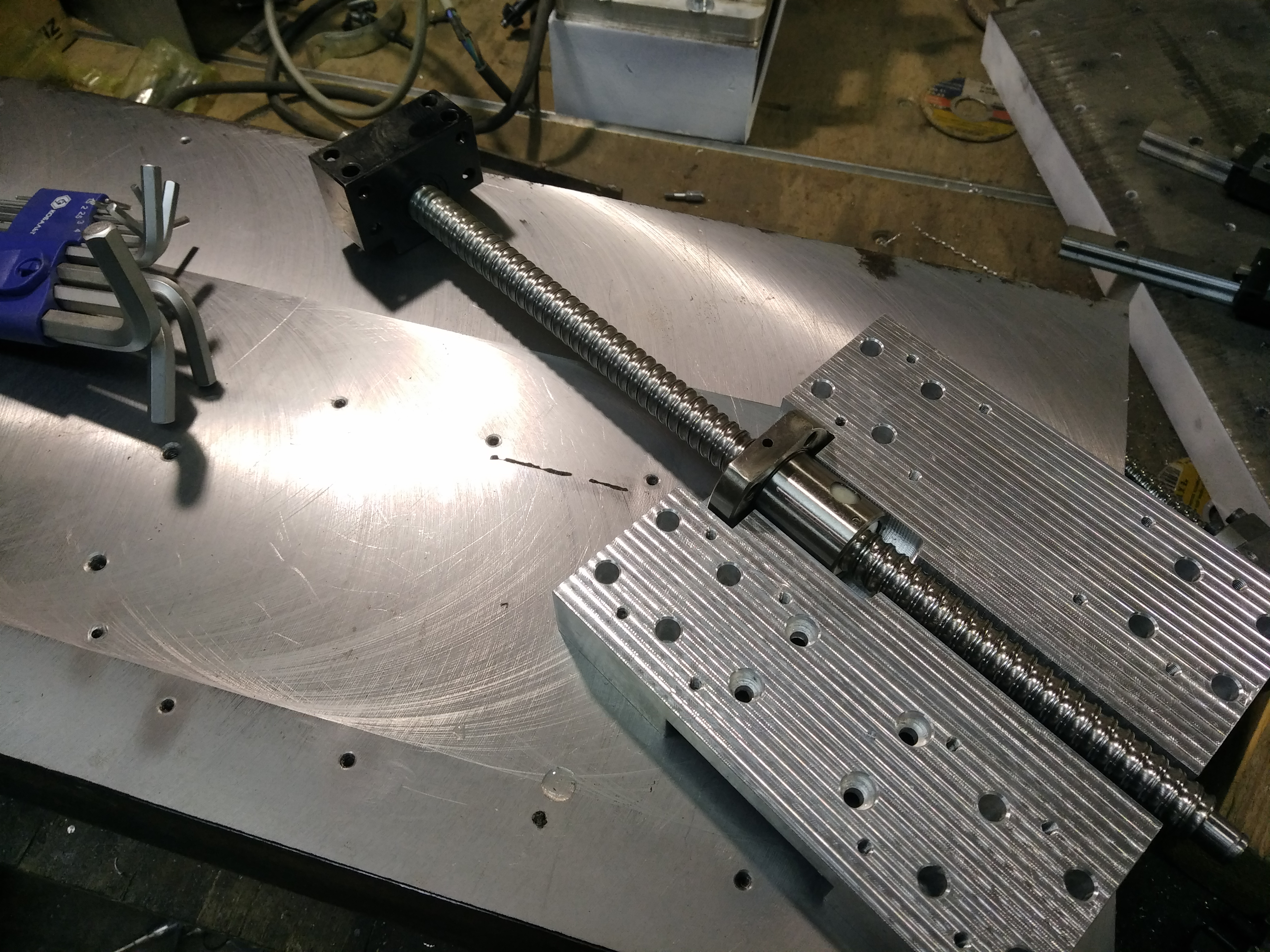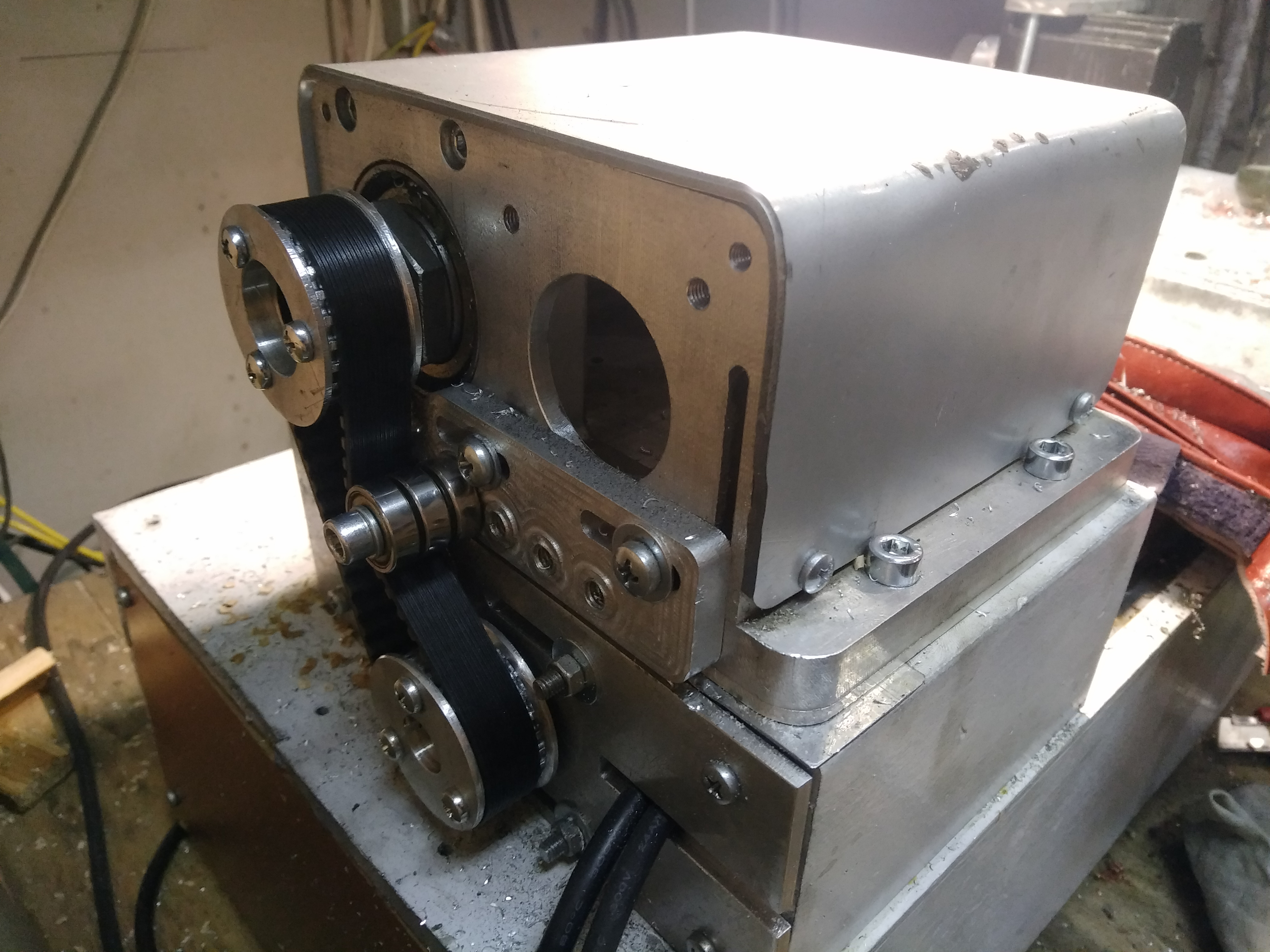Узел натяжки планировал такой,чтоб можно было экспериментировать со шкивами: В металле получился так: