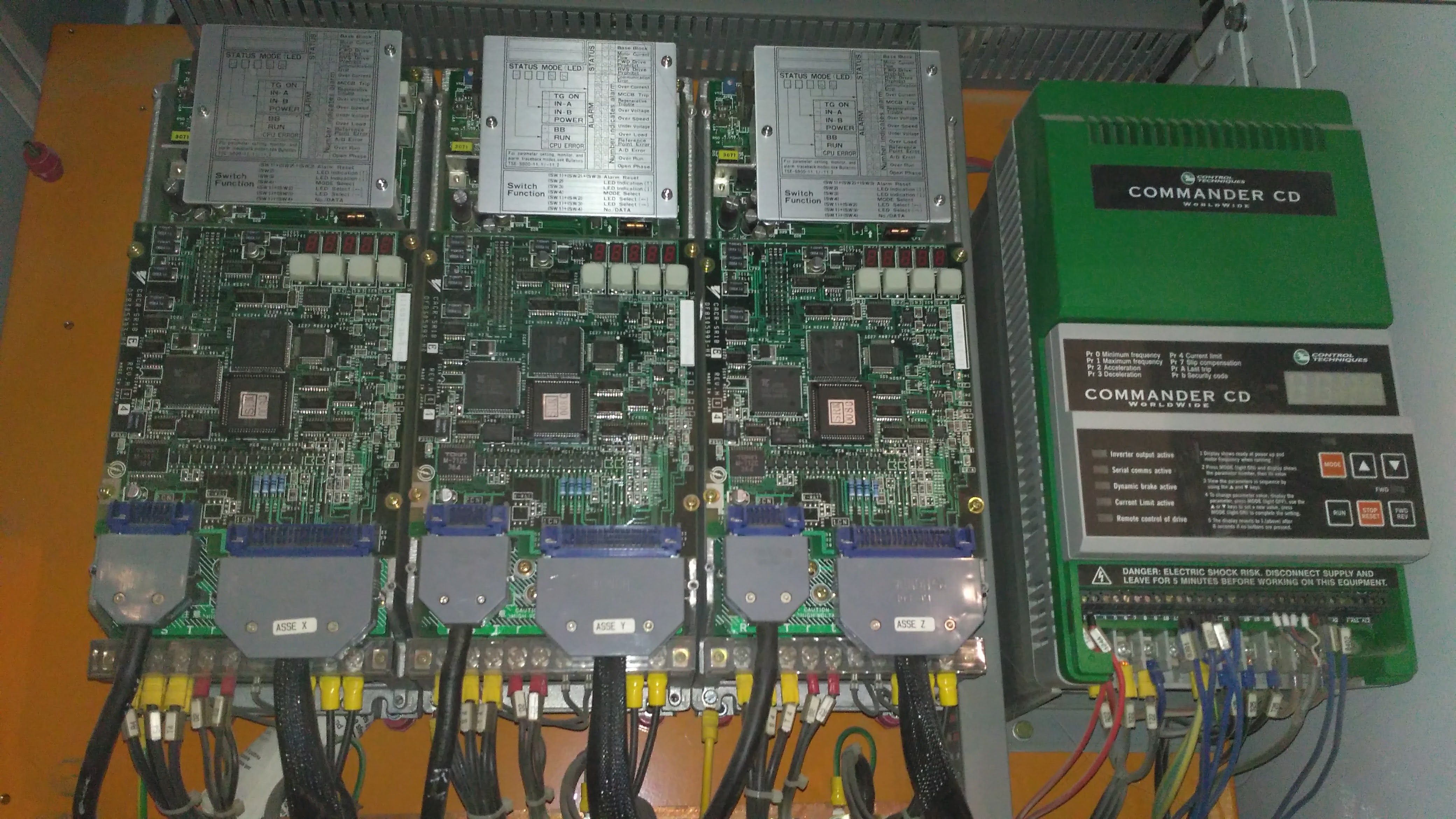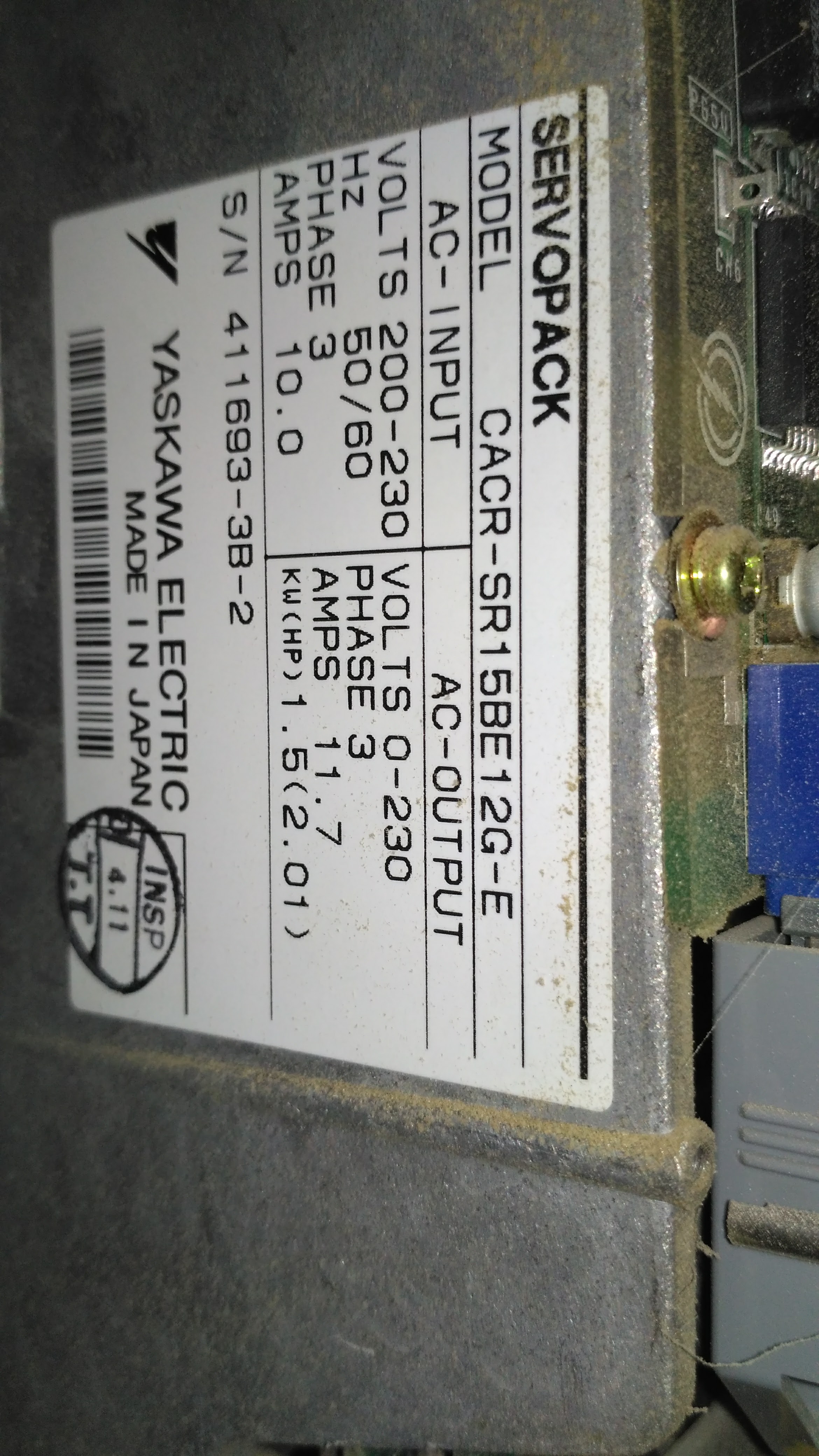 В стойке из основных блоков управления стоят сервопаки 3 шт Yaskawa CACR-SR15BE12G-E, инвертор CDI I 750 и модули I/O CNI но их походу придется выкинуть, так как я не знаю какой они используют протокол связи с контроллером..