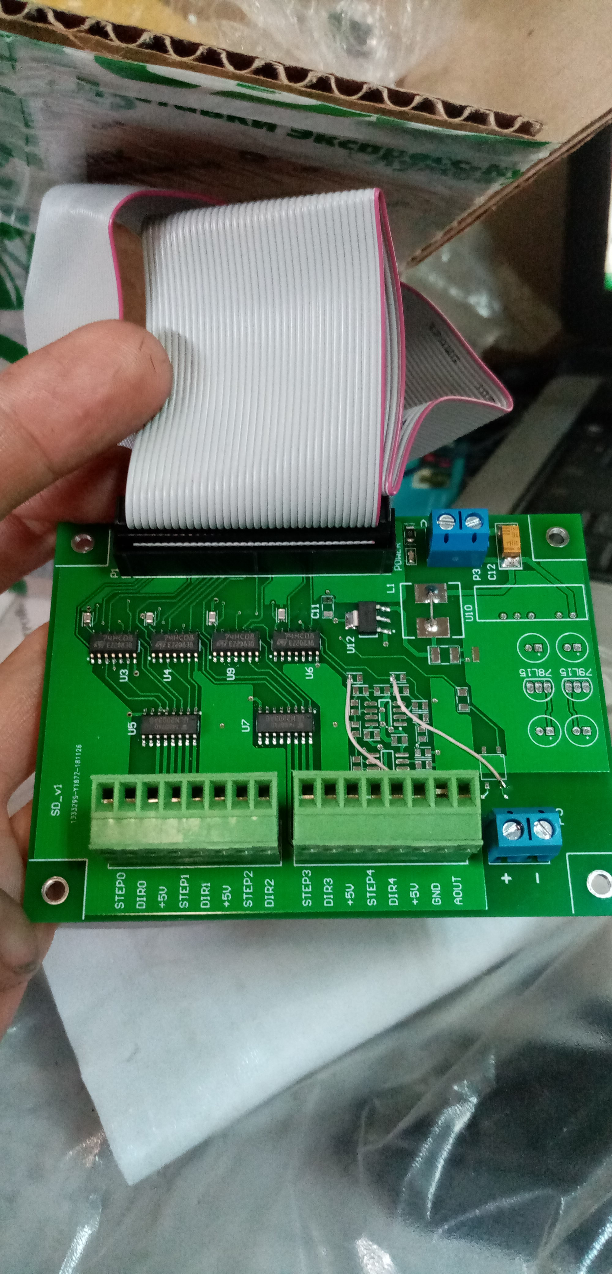 Прикрепляю вариант управления приводом, фото платы степ дир и фото материнки. Ещё в описании вид платы со степ+, степ-, дир+, дир- а у меня другая плата