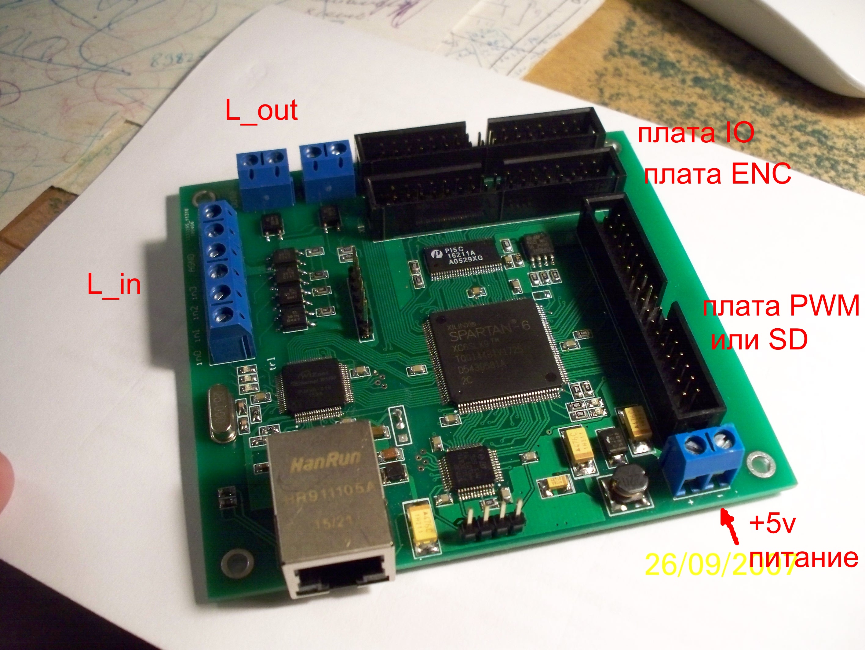 Сейчас привод управляется cw/ccw. Такой режим можно выбрать в линуксе при конфигурировании stepgen. Поэтому Для этого проекта я ваши платы и приобрёл а не мачем через лпт пытаюсь управлять) на микросхемках можно степ дир преобразовать в cw/ccw, но хочется на программном уровне это делать. Привод mitsubishi mr-j2s-200, в него заведён энкодер 163000 импульсов кажется, поэтому в линукс я энкодеры заводить не собираюсь. Всё вопросы позиционирования пусть решает сам привод. Линукс у выведу только концевики и аларм привода