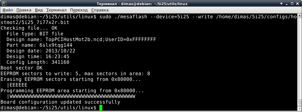 Выполнил все по инструкции. После прошивки терминал сказал, что устройство прошито успешно.