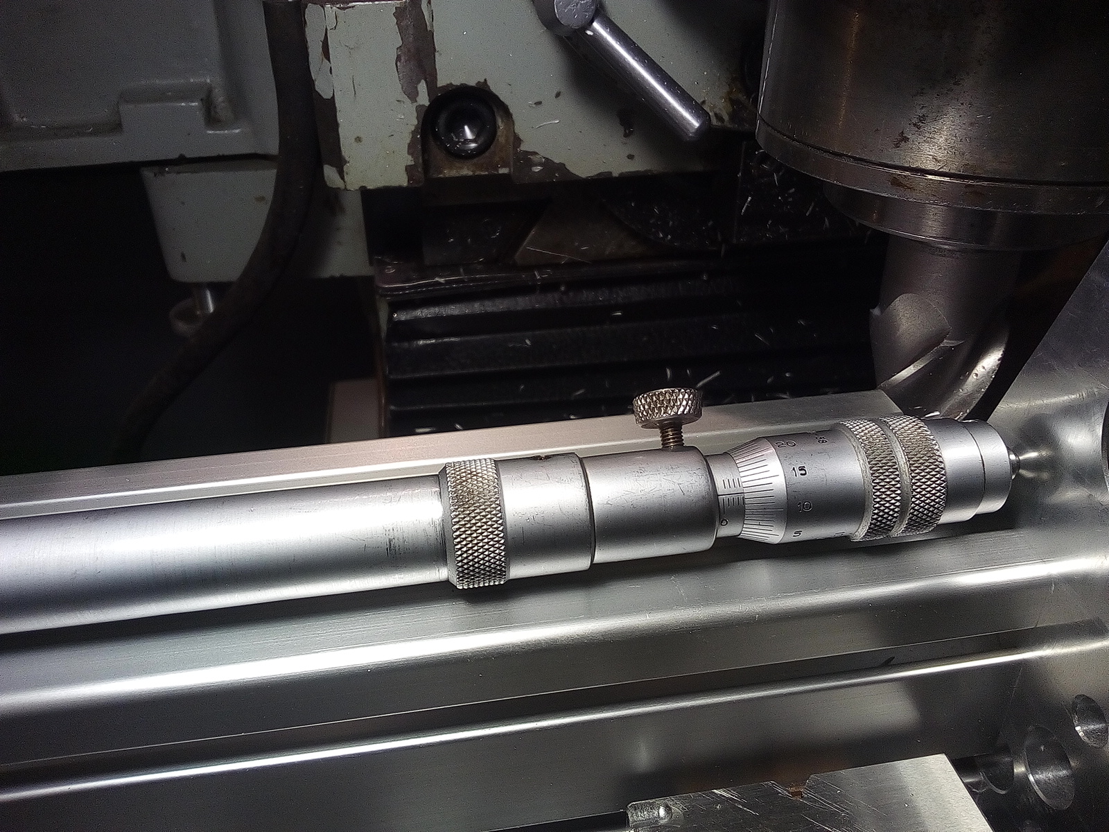 Затем прикрутил к торцам профиля две заглушки от станины и нутромером замерил фактическую длину.