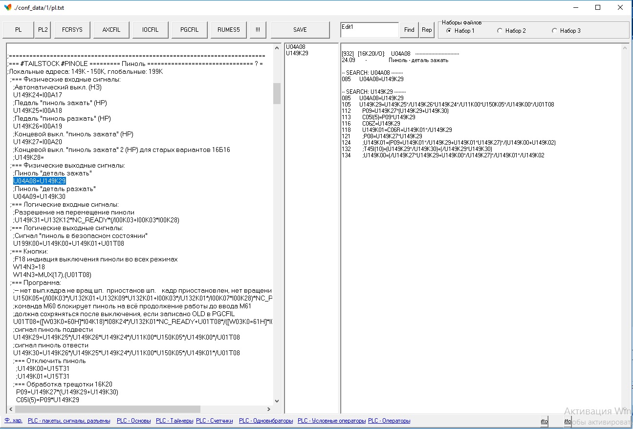 Создавать новую ветку, думаю, не к чему, хотел бы вот приконнектиться сюда, сваливать свои "первыя знакомства" с бл_систем... Ну хорошая такая система, ничего не скажу. И дали мне стойку, сказали, на, ..., и чтоб за месЕц она у тебя заработала. Решил написать для нее хрень, которая бы все эти сигналы для начала хоть описывать могла и перенес в нее халипели с развесистых мануалов производителя, вместе с конфигами сигналов конкретного станка. В будущем, когда буду делать мондернизации, будет строиться и электрическая схема и многое другое, о чем я пока умолчу... Итак, основная задача решена - любой сигнал расшифровывается русским понятным языком на кончике мыши, ровно как и остальные тонкости - параметры файлов характеризации, элементы языка PLC. Так же прозрачно сделана замена имен на человекопонятные и экспорт обратно в язык PLC.