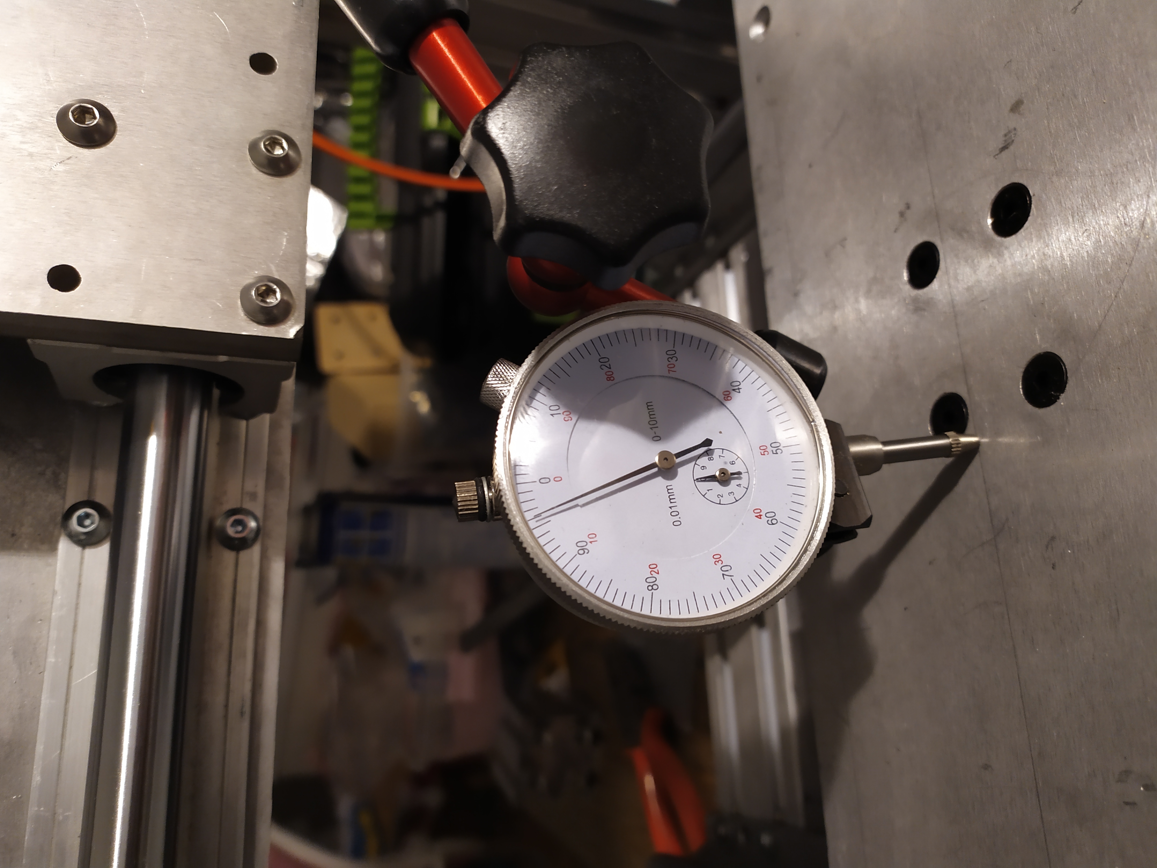 Теперь о том как это исправить - либо собрать "наоборот" либо выкатывать индикатором на плите направляющие и подкладывать под них фольгу (хуже не станут они от этого)