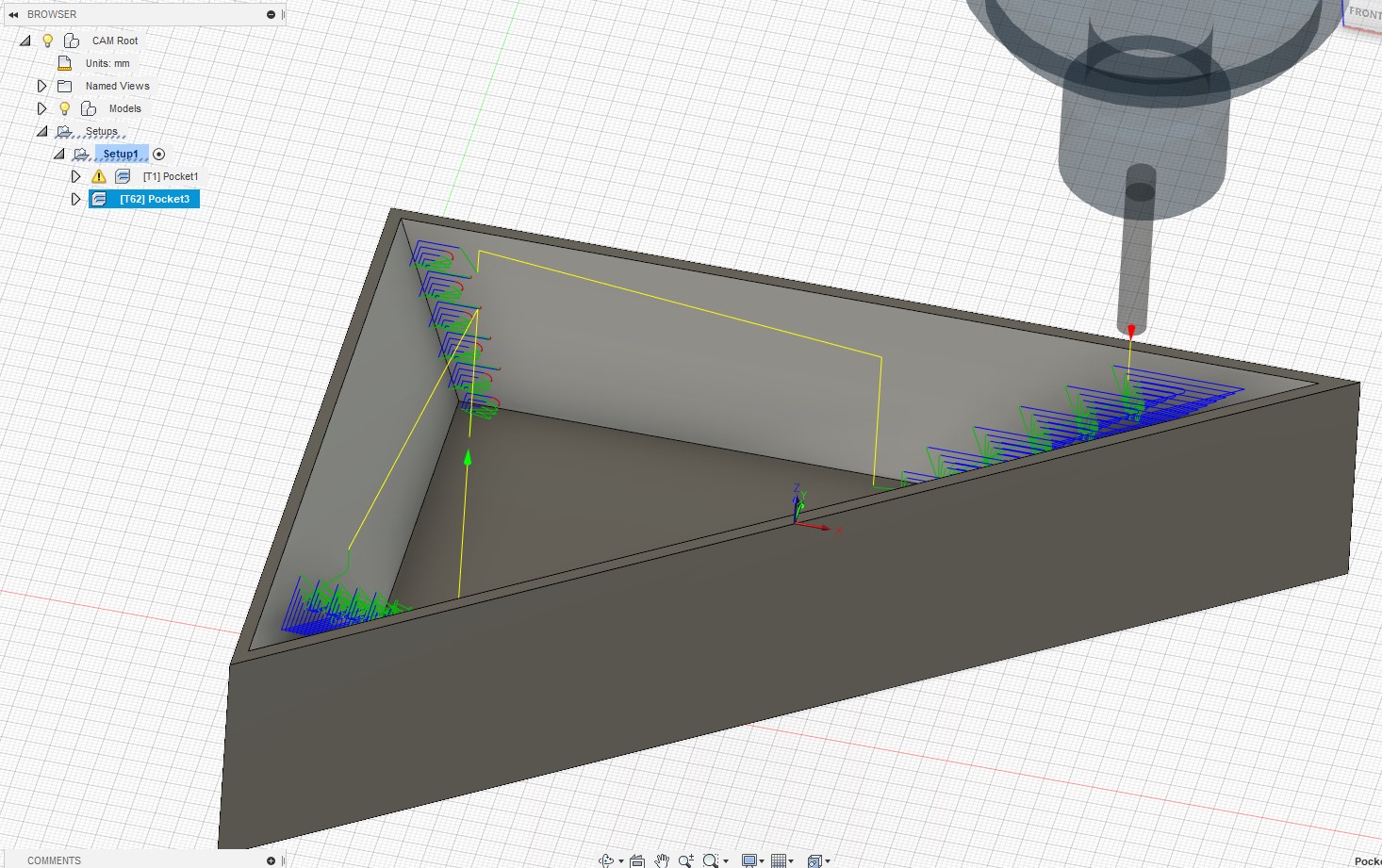 А всякие углы и критичные плоскости - это обычно чистовыми 2д-3д операциями проходится, явным указанием что обработать. Все же покет это больше черновая стратегия для выборки мяса, крупные риски всё равно будет стараться отрезать.