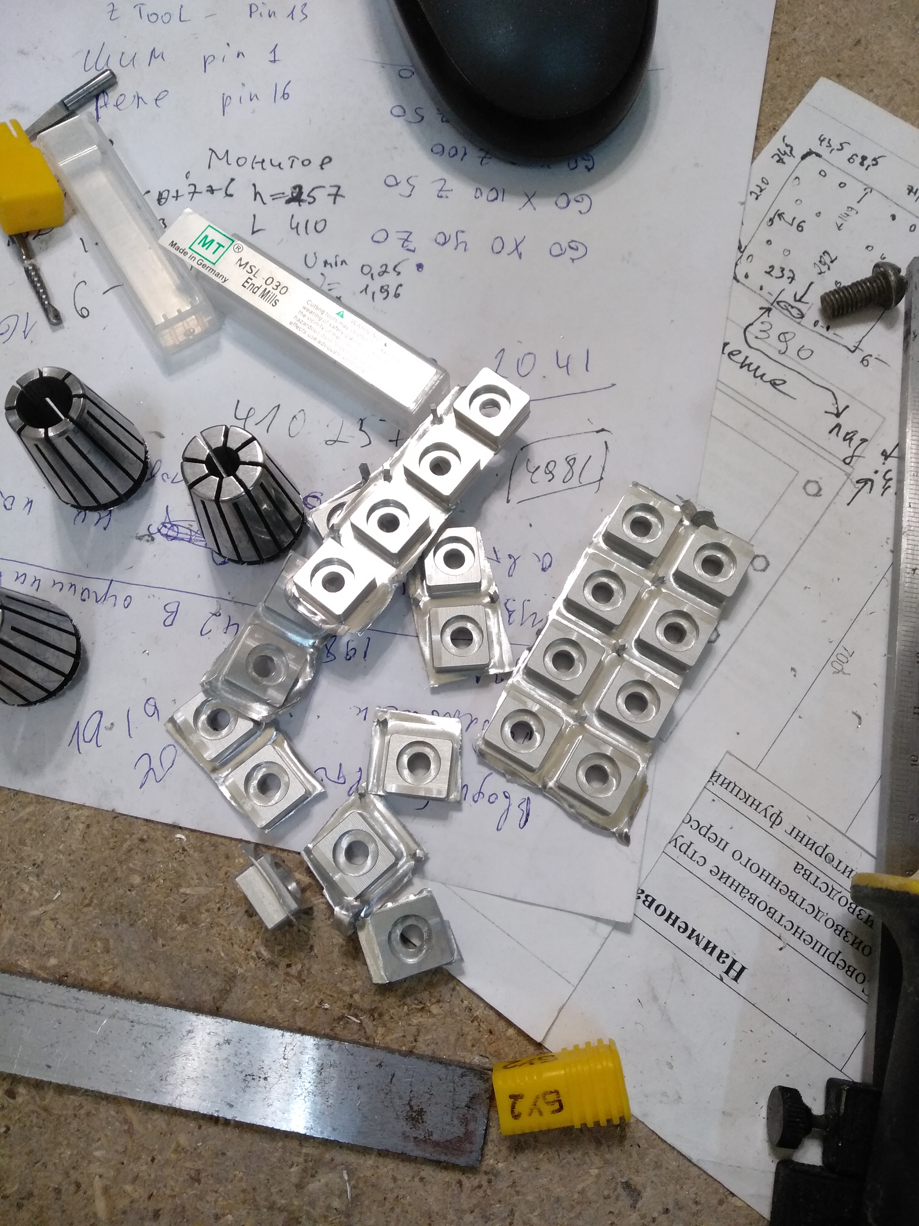 Посему крепежи уже слегка покорябаны - у мну крепежи по нулям получились и лезут не в каждый паз... пришлось молоточком каждый прогонять по всем пазам чтоб свободно ходило.