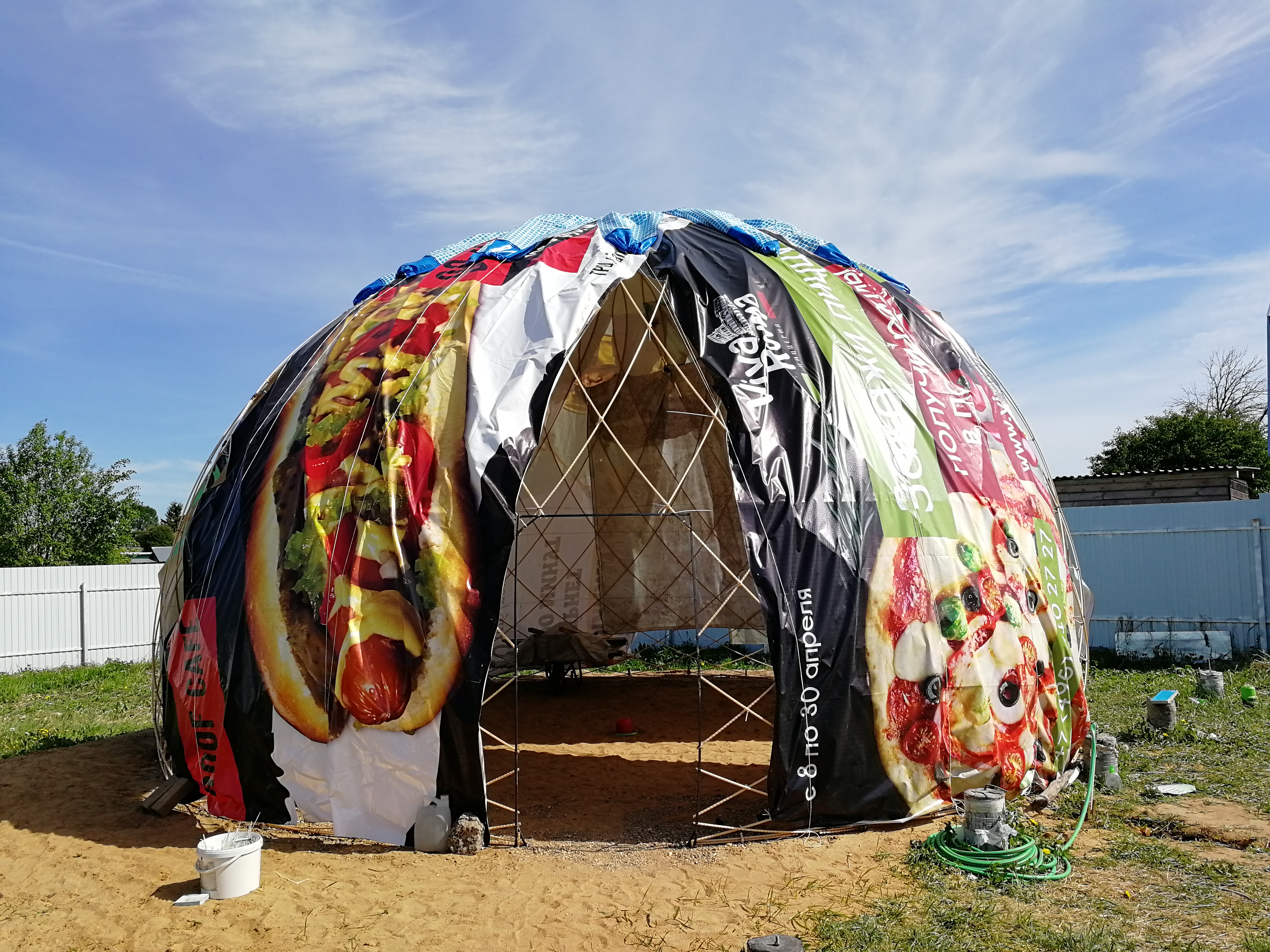 Leha555 писал(а):решили создать купол из арматуры для защиты будущей экспериментальной площадки от дождя и ветра.