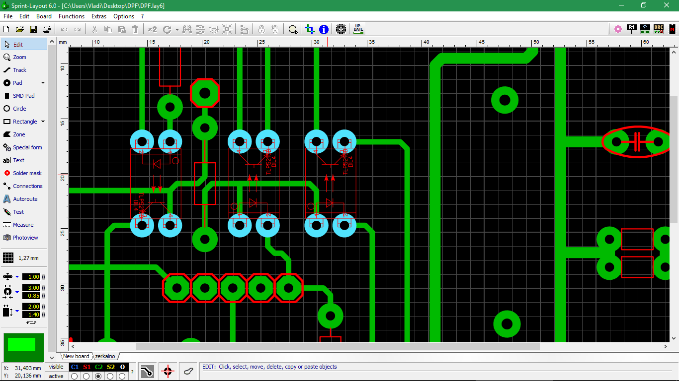 В том-то и дело, что делаю экспорт в gerber. И уже потом во FlatCAM 8 создаю уп.Mamont писал(а):В sprint layot при экспорте файла фрезеровки изоляции дорожек указать слой С2 не зеркалить (по умолчанию он зеркалит этот слой)
