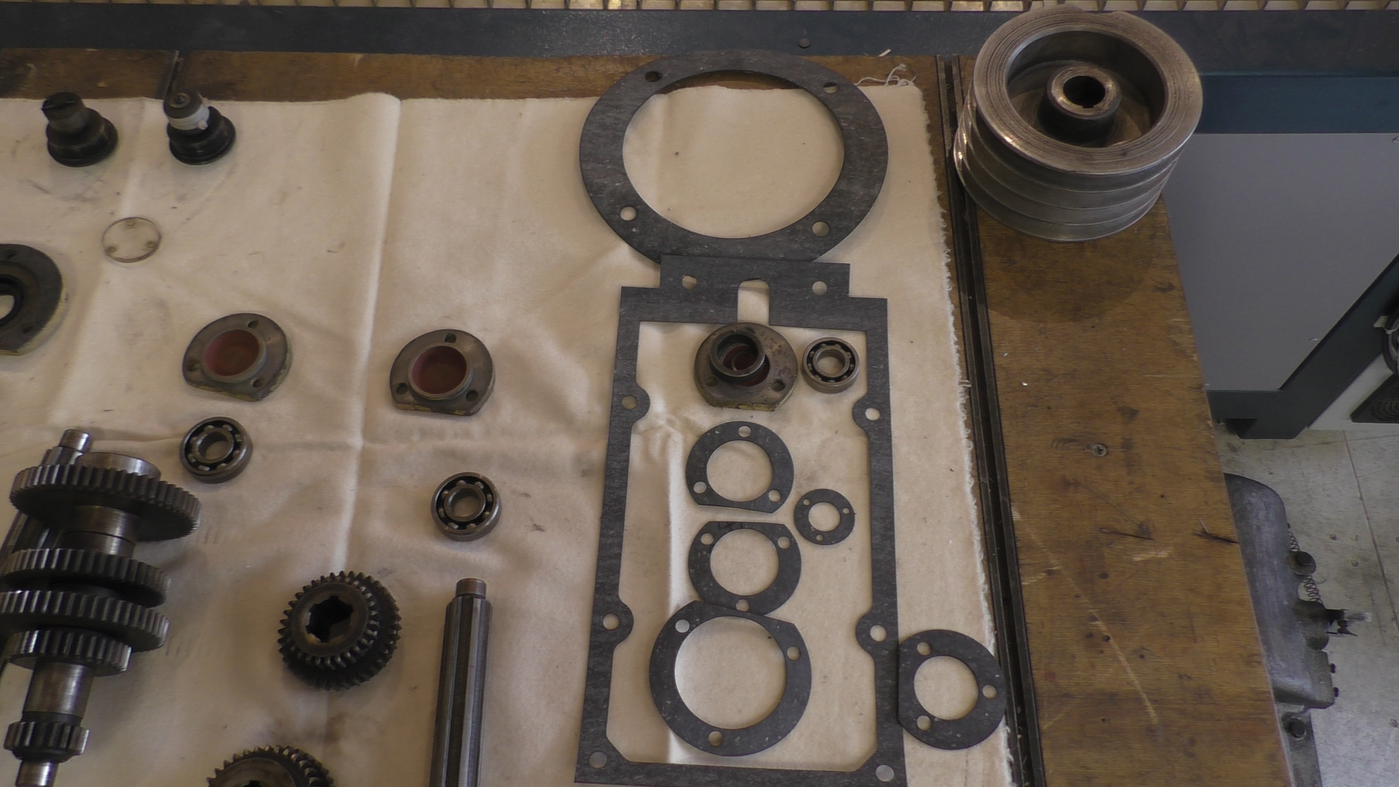 В общем, собрал из двух коробок комплект целых шестерен, промыл все как следует, разложил - сушится пока.