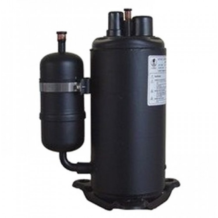 Это ротационный компрессор. Производительность у него всего несколько кубов в час. Кроме того, он имеет неприятное свойство очень быстро выдувать из себя масло. В кондишине оно с фреоном возвращается назад, в разомкнутой системе нужно ставить маслоотделитель. Маслоотделитель возвращает не 100% масла, так что желательно еще и контролировать уровень. Если масло синтетическое, нужно заменить на минералку, иначе наберет воды и под действием температуры образует кислоту, которая сожрет обмотки. Для сдувания чего-либо с фрезы нужна хорошая объемная производительность. Такой компрессор ее не имеет.