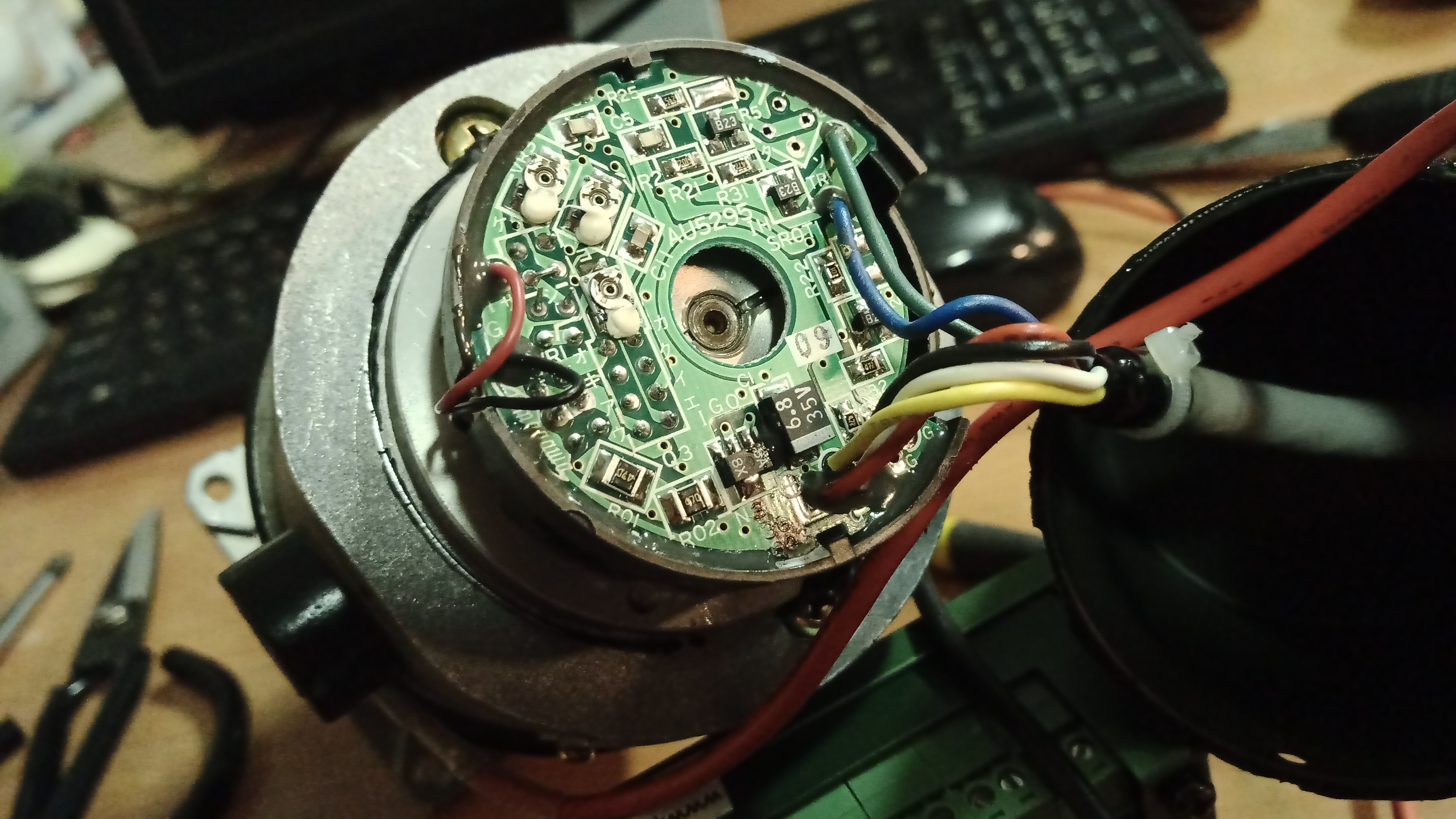 Зелёный - А, Синий - B, Красный - +. А вот с GND не понятно, вполне может оказаться белым. Опять ракурс неудачный, провода закрывают вид. Вот если на первой фотке обзор был и на нижнюю часть платы...