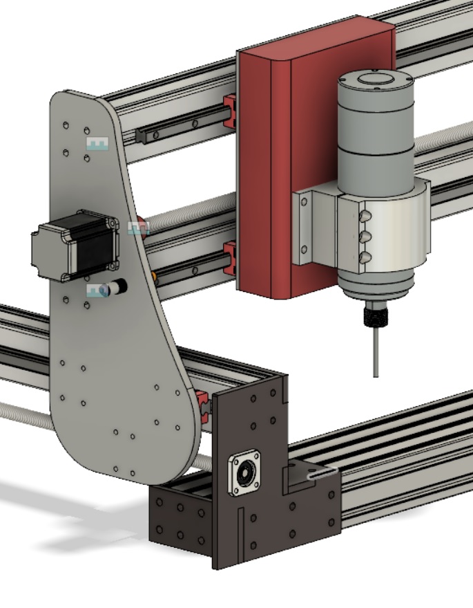 Немного поменял конструкцию, решил отказаться от алюминиевого листа в пользу железа, поэтому увеличил жесткость боковин портала. Сейчас все алюминиевые профили очень просто посчитать исходя из желаемых рамзеров. т.е. можно из одного комплета уголков и боковин собрать станок любого размера.