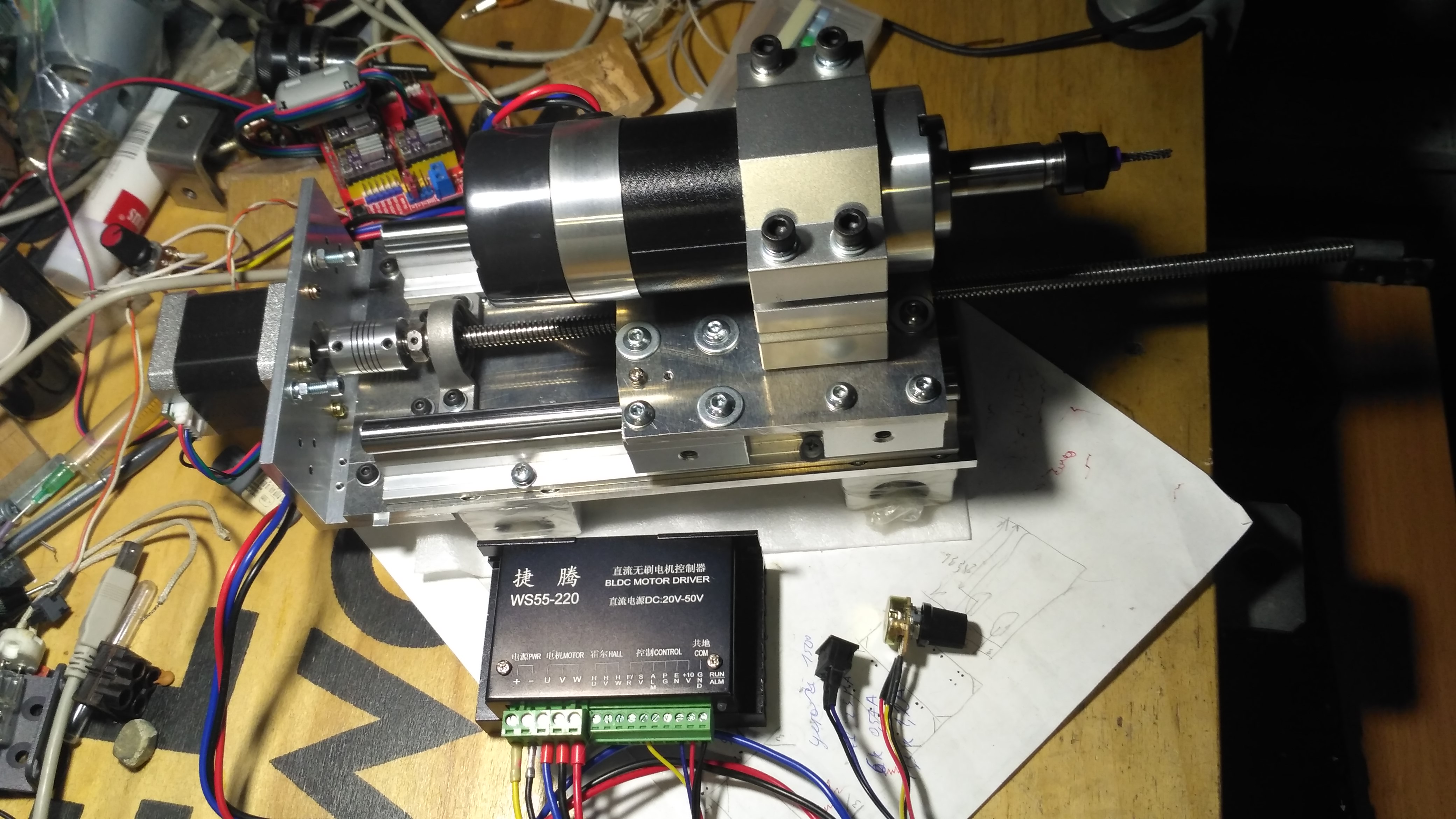 Когда прошлогодним летом проектировал свой первый и последний станок с ЧПУ пришёл к выводу, что совмещать все достоинства в одном шпинделе хоть и можно, но в ряде случаев экономически нецелесообразно. Поэтому на оси Z поставил "ласточкин хвост" и разъём питания. Такая конструкция позволяет заменять шпиндель за несколько секунд или за пару секунд переставлять его на нужную высоту в зависимости от длины фрезы или высоты заготовки. Для начала завёл подобный коллекторный шпиндель на 500 вт, вчера пригласил его на праздник первой стружки, на 60 вольтах вместо 48 нормально работает. Для фрез до 4 мм на днях доделаю коллекторный шпиндель из ротора от дремеля и статора на постоянных магнитах, должон до 30 тыс об/мин без проблем крутиться, может и больше удастся разогнать.