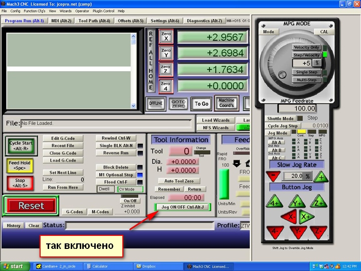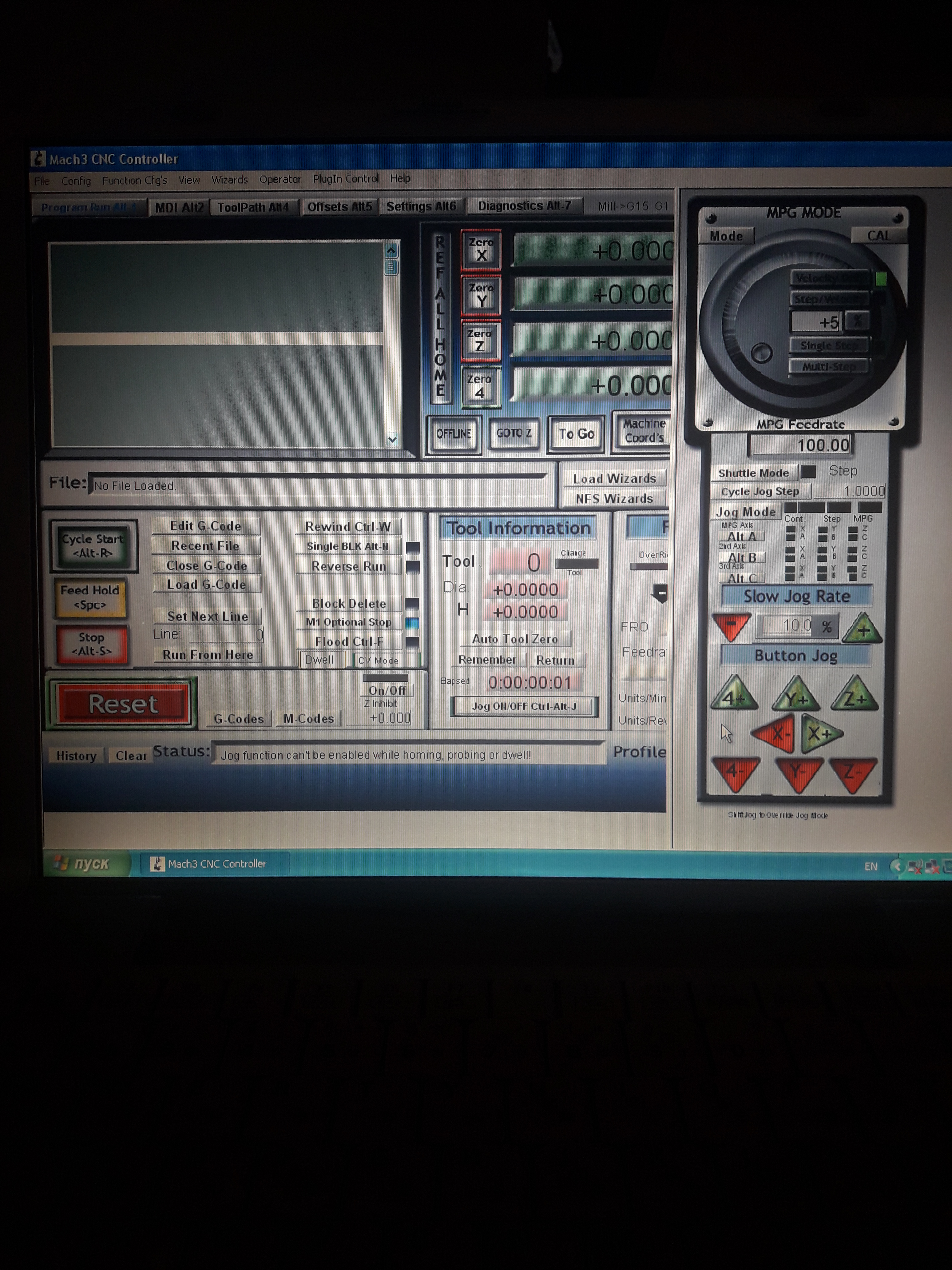 Сообщение появляется в маче,на английском (Jog function can't be enabled while homing, probing or dwell) перевод : Функция толчкового режима не может быть включена во время наведения, зондирования или задержки. (Сори!первый раз не корректно перевёл,поторопился) скрин ниже.