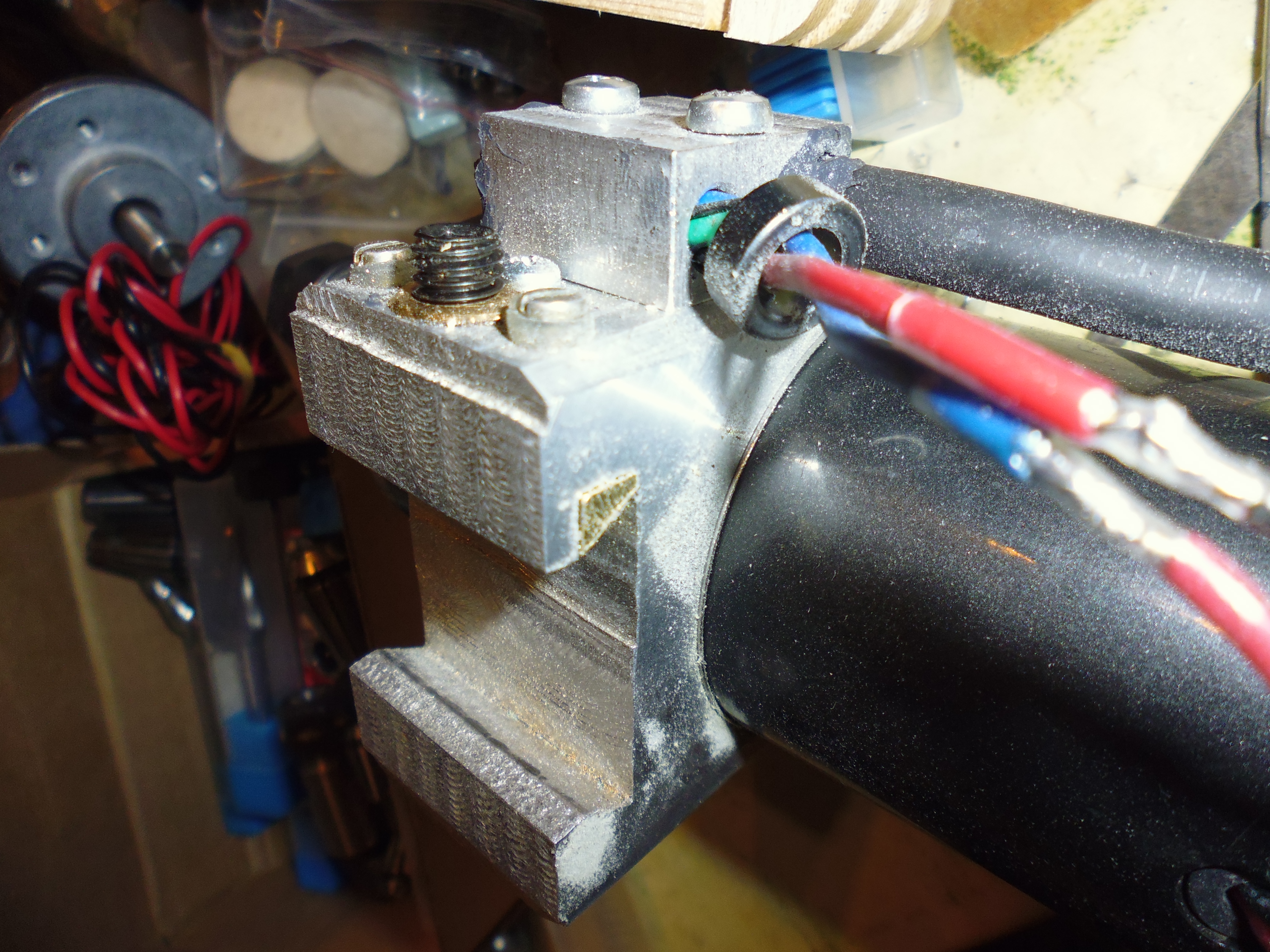 Можно, но злые языки сказывают, что нехорошо шпиндель, особенно такой длинный за самую жопку зажимать ибо рычаг большой получается. У меня же можно не только двигать по высоте, но и быстро заменять, причём на шпиндели другого диаметра. И может в вашем случае клиренс лучше менять не ногами портала, а толщиной столешницы?