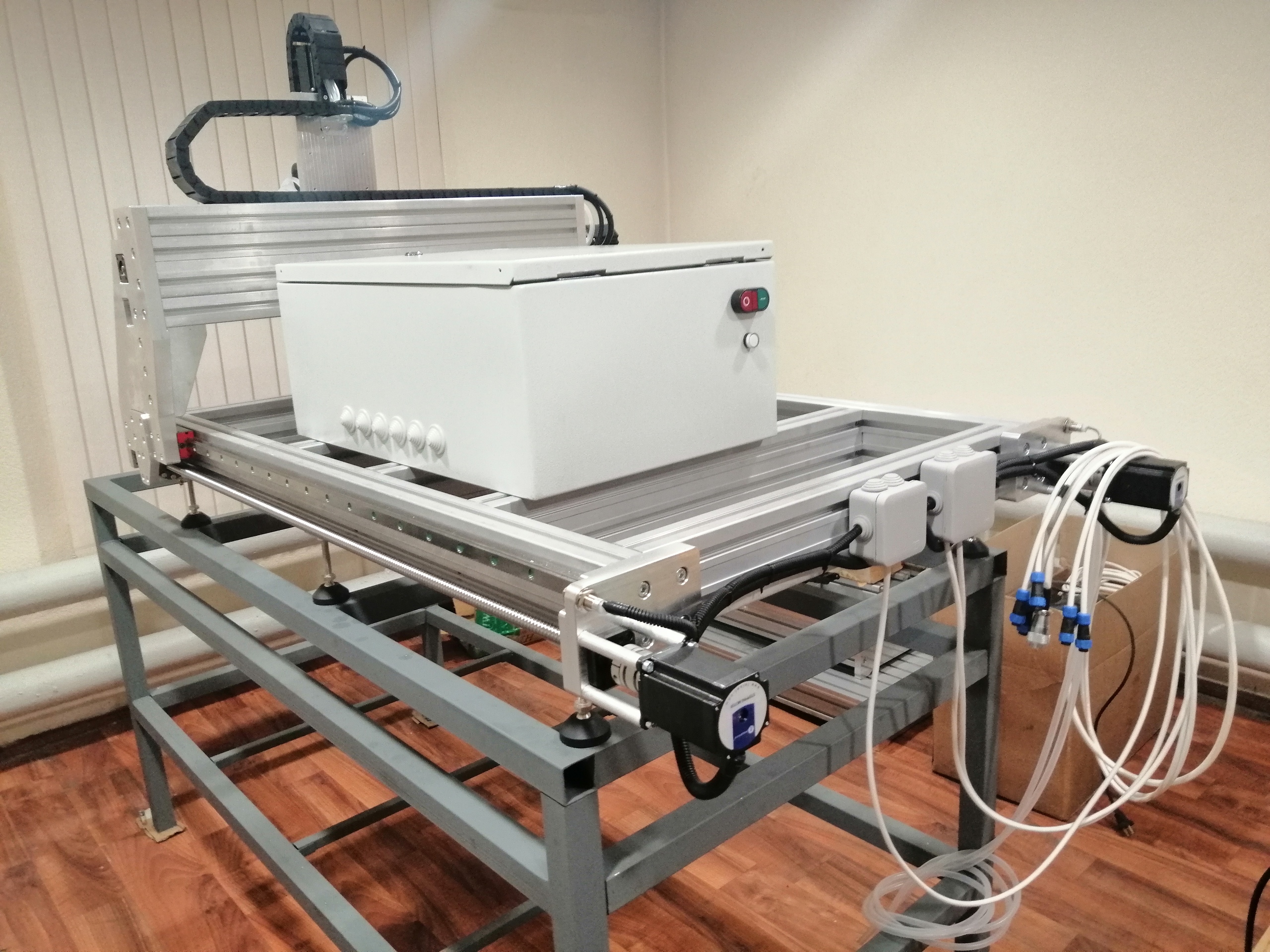 У меня вообще от старой версии остался один ящик который висит на стене, но он слишком маленький и второй ящик я хочу докупить, там буду стоять тороидальные трансформаторы (4шт) и 1 импульсный блок питания, то есть думал сделать два ящика, один для управления станком, второй для питания всех моторов...