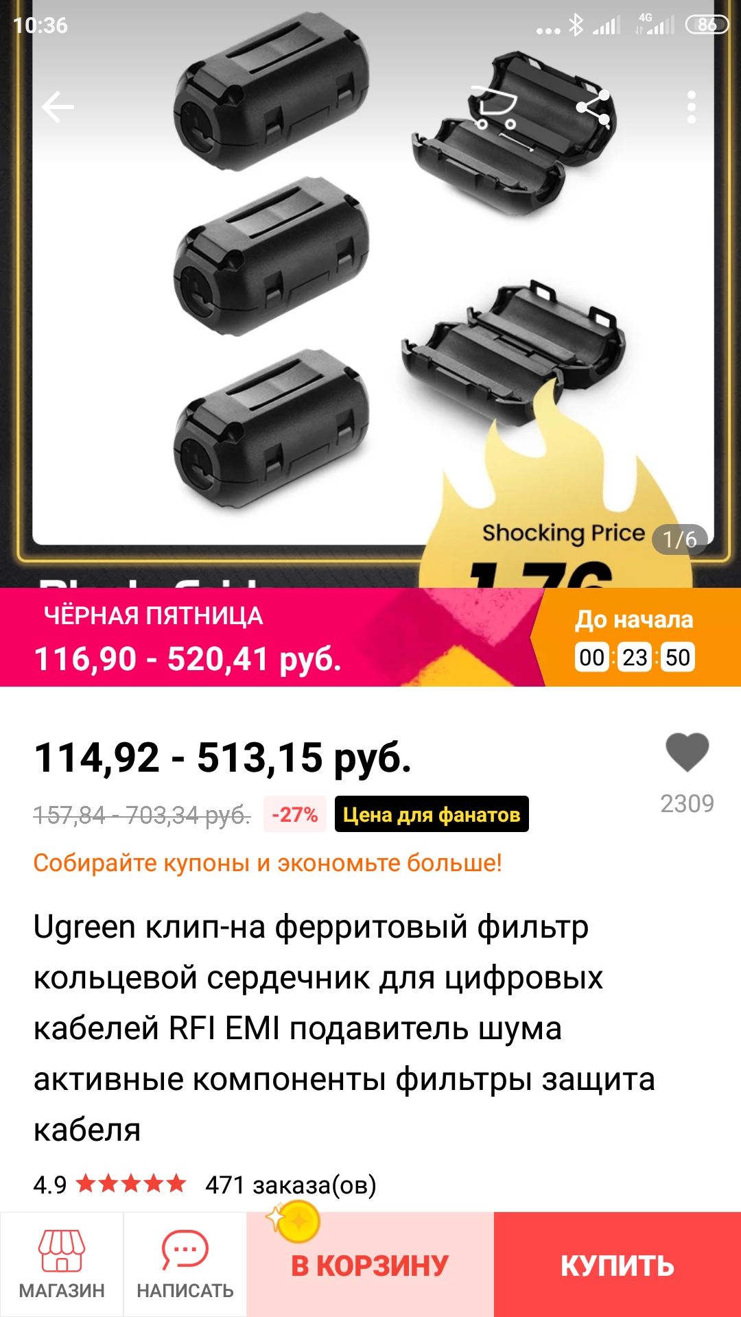 Есть смысл хотя бы попробовать закупить таких магнитиков? И зацепить на пучки проводов?radlif писал(а):Можно просто на все провода фейритовые кольца одеть)