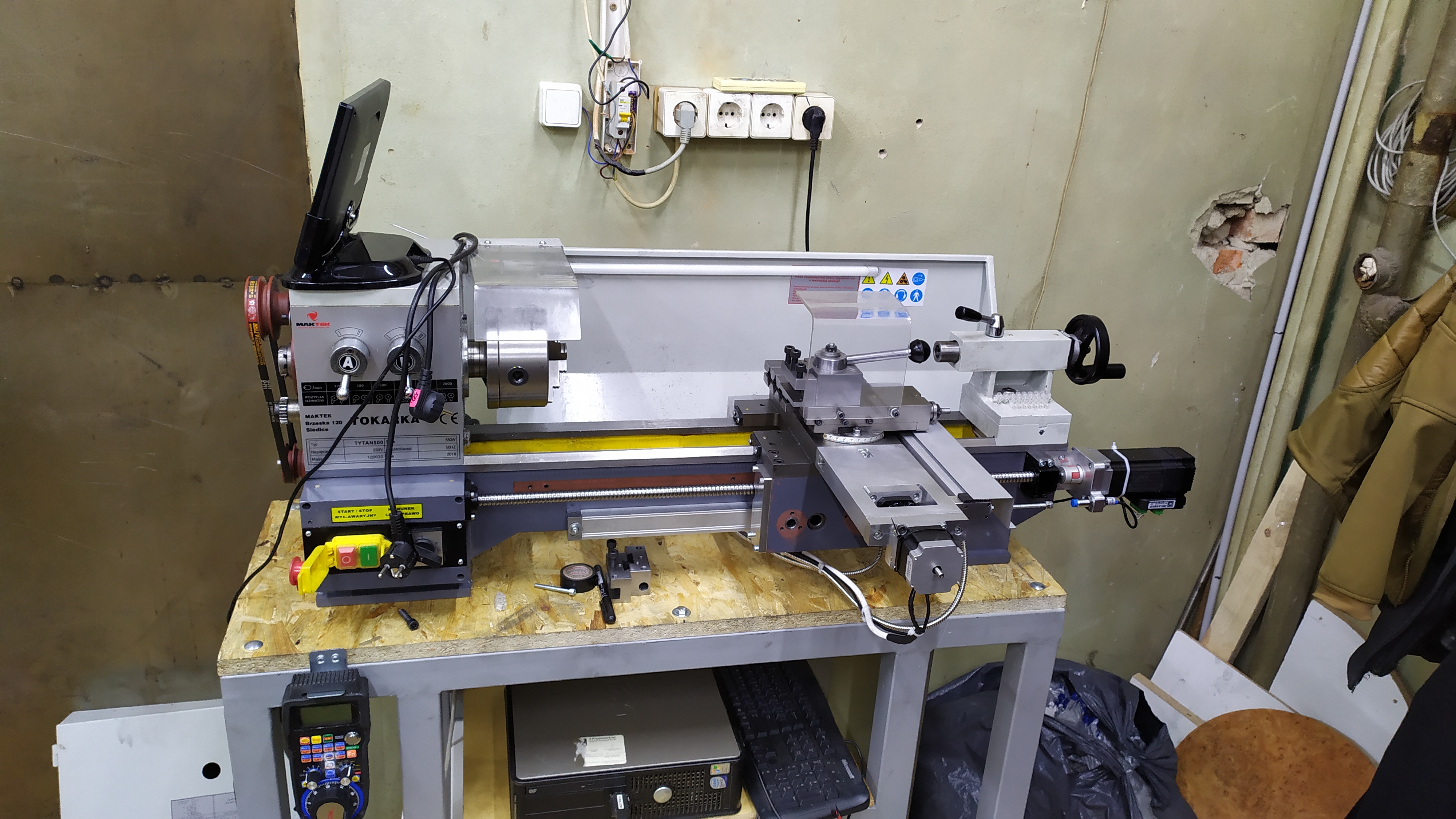 Была заказана кассетная резцедержка вместо стандартной. Стандартная будет служить для отрезного резца, разработка плиты для нее в процессе. Вообщем накидал архивных фото и свежих для ознакомления. Будет управляться пока через LPT с Mach3, позже приобрету ESS.