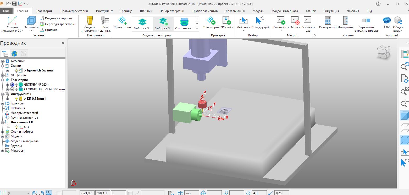 Симуляция показывает какую то фигню. Несколько мм фреза идет вертикально как сверло, потом делает несколько движений в плоскости XY и цикл повторяется.
