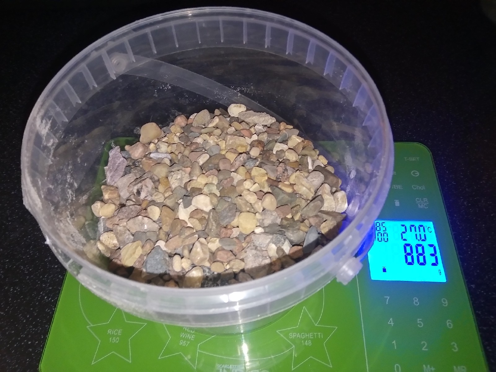 Обычно с бетоном методом подбора делал. В ёмкость щебень, потом туда песок и более мелкую фракцию с лёгкой вибрацией, но не настолько что бы всё это плавало, а лишь пустоты заполнялись при неизменном объёме и уровне щебня. Как то так. Тут выбор то и не велик. Вот гравийный щебень само то из того что нашёл по месту и песок кремниевый мытый. Попробую пару отливок с фиброй базальтовойNonstopich писал(а):Мрамор - так се для подобного рода задач. Везде проигрывает граниту. Теорию плотности смесей уже осилили?