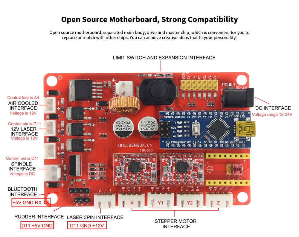 А можно чуть подробней, что-то сам сомневаюсь, юоюсь спалить что-нибудь...Курдль писал(а):Я пробовал подключить аналогичный. К выводу PWM подключаешь сигнал с 3-хпинового разъема лазера (PWM) а VCC надо смотреть, какое на этом контроллере. Если +5, то снимаешь с разъема BlueTooth станочного шилда.