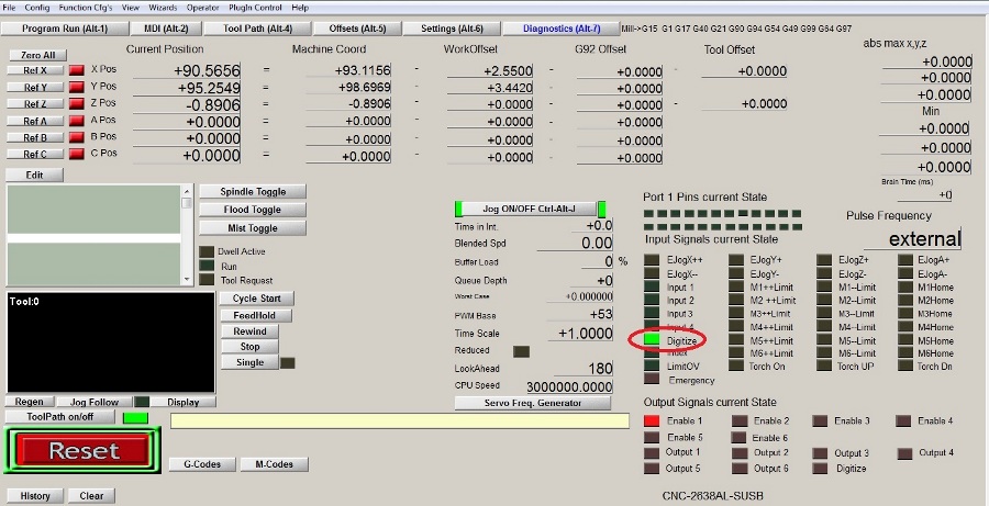 Подключил датчик нуля инструмента, он видится в маче и при замыкании на инструмент в окне диагностики гаснет зеленый огонек, т.е. есть реакция на замыкание.