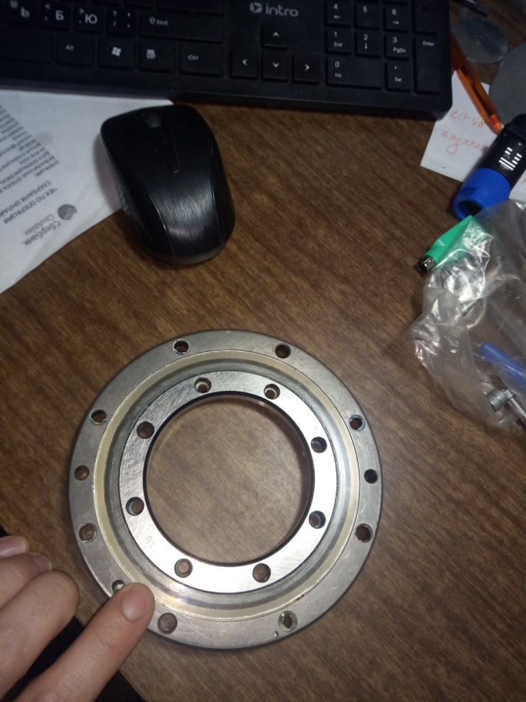 "Вороне бог послал кусочек сыра". Предложили подшипник. Я почему то сразу увидел в нём поворотный горизонтальный стол, который можно крепить на основной рабочий. Он позволит мне обрабатывать поле с диаметром 430мм