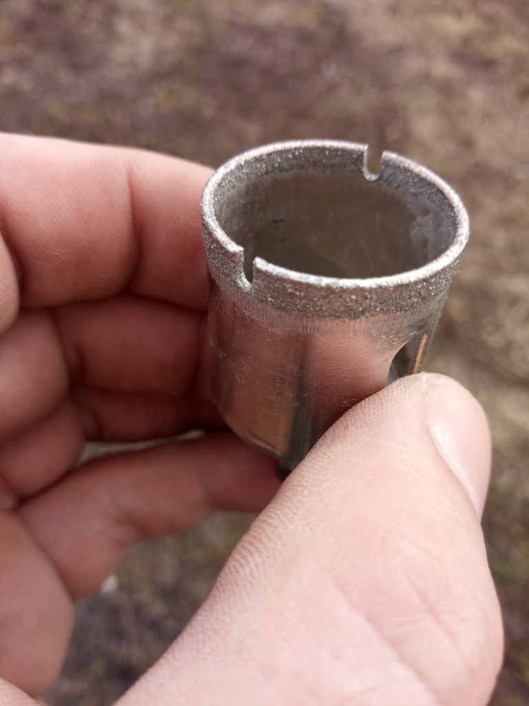 Сегодня пощупал гранит инструментом. Для начала пробная сверловка. Коронка китайская за смешную цену, обороты 850, водичку с лейки подливал. Сверловка идёт как по маслу. Я ожидал чего то более тяжёлого. Коронки короткие к сожалению, но для закладных на клей нормально. Насквозь делать отверстие в 100мм прийдётся с удлинителем. Коронка после первого отверстия подзализалась, Алмазики конечно же за такую цену тухленько на ней распределены. Одной, думаю отвестий на 5-6 хватать будет