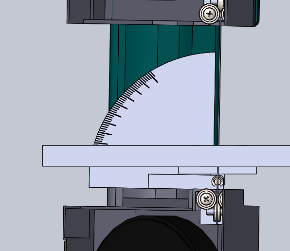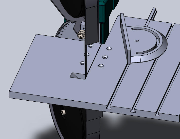 Теперь задача реализовать на столе поворотный механизм заготовки - такой узел уже давно используется на больших вертикальных ленточных пилах