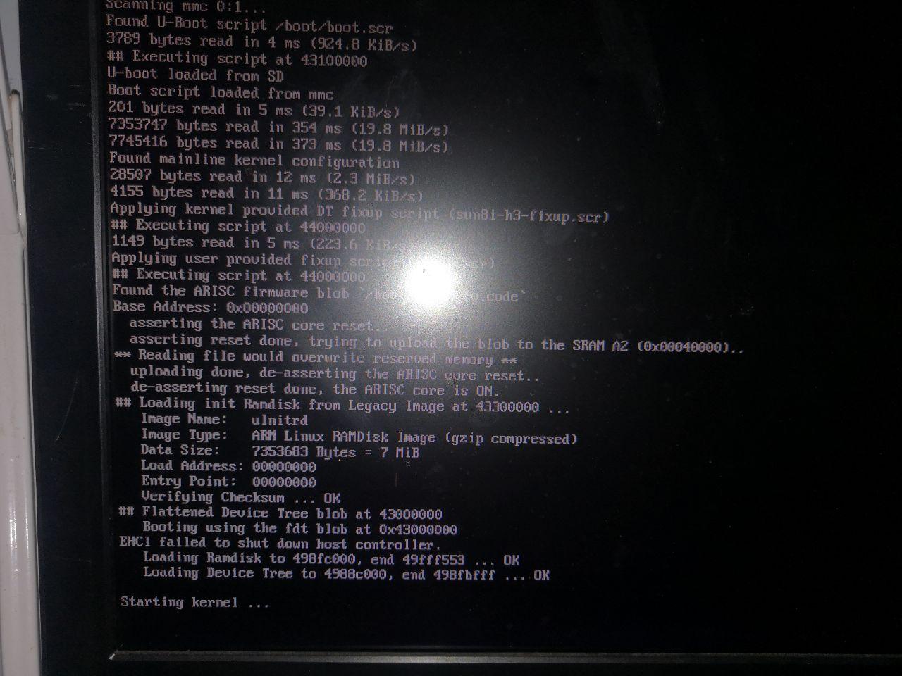 Да, у меня первая мысль была что скрипт не выполнился и прога не загрузилась в сопроц, но нет, подключил монитор специально к ней и увидел, что все что залито в /boot - скрипт загрузки выполняется, при uboot выводит как будто все ок.MX_Master писал(а):Маркером успешного запуска сопроцессора являются строки со словом ARISC в выводе при старте мини ПК.