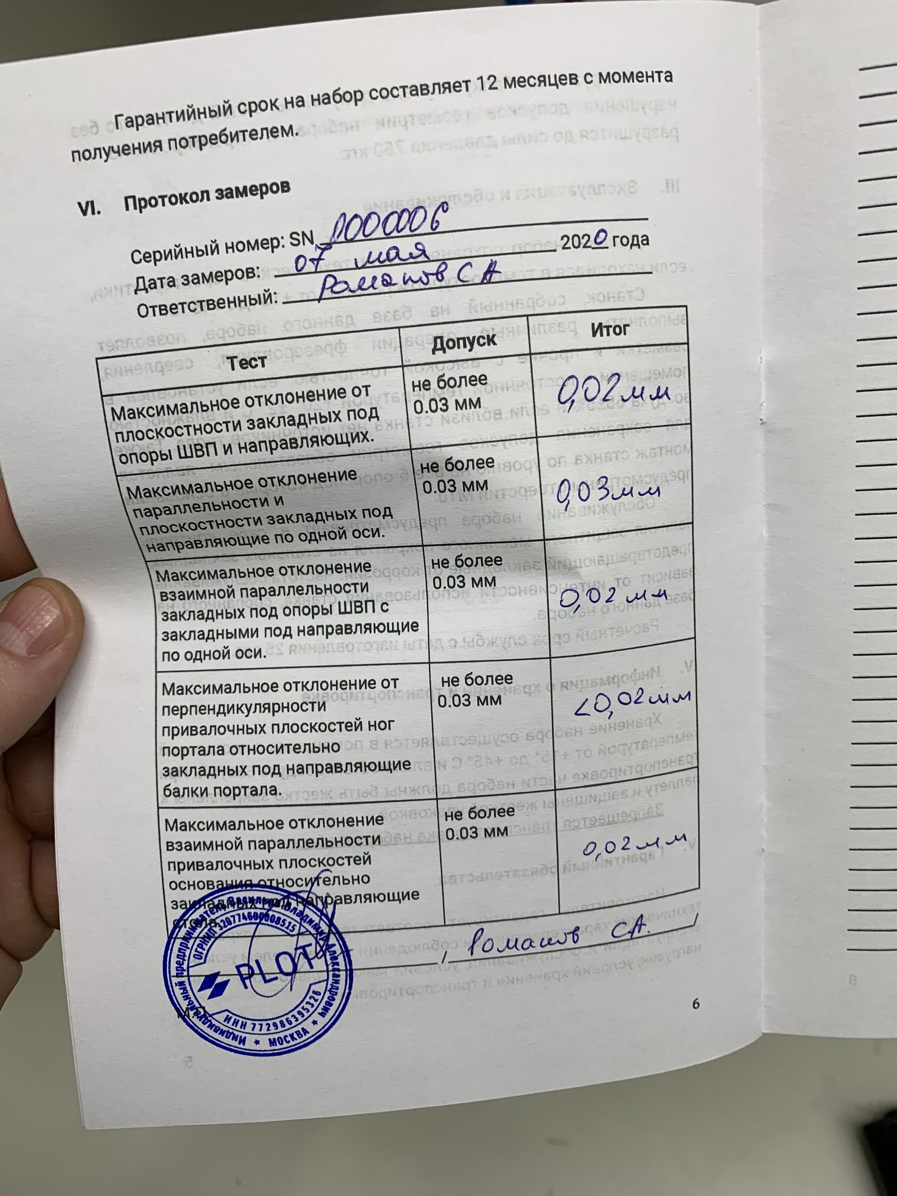 Советую вам для неверующих или сомнивающихся заказчиков - делать как дополнительная опция - (например стоимостью ~ 5000 - 8000руб) - измерение геометрии на основе вашего поверочного инструмента на видео и отправка ссылки на видео клиенту, чтобы был спокоен... так как это процедура занимает много времени (монтирование и сьемка видео), то и она должна оплачивается отдельно... ИМХО.